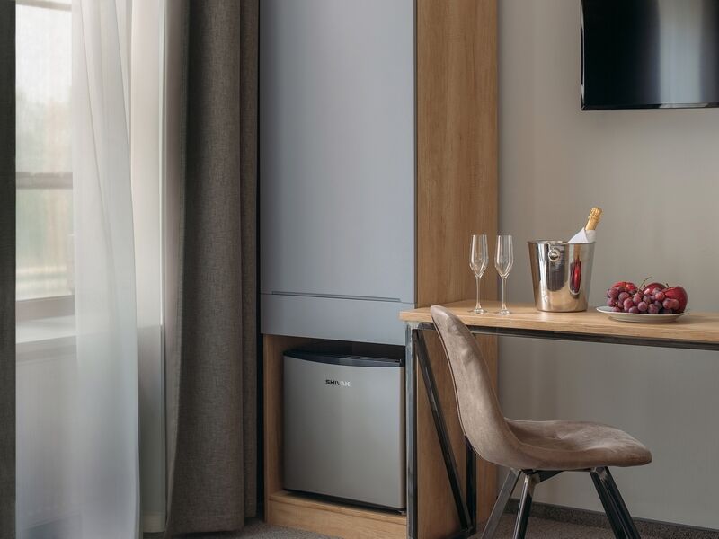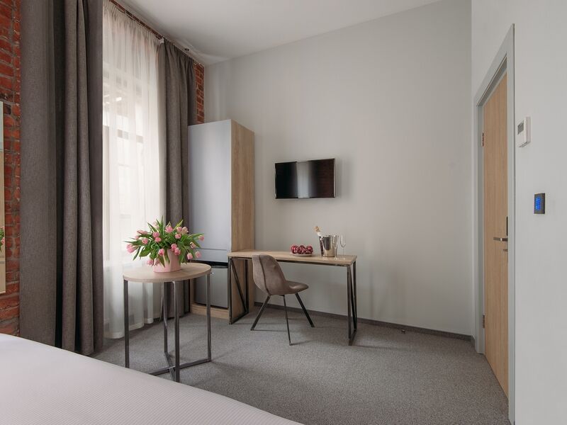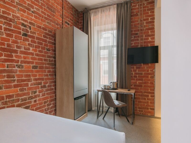 авг. 2019 г.Соответствует трём звездам!Улучшенный номер. Намек на современный стиль, в отеле присутствует (сенсорное табло на двери номера, кирпичные стены (а-ля лофт), практичное оснащение и сдержанный дизайн.