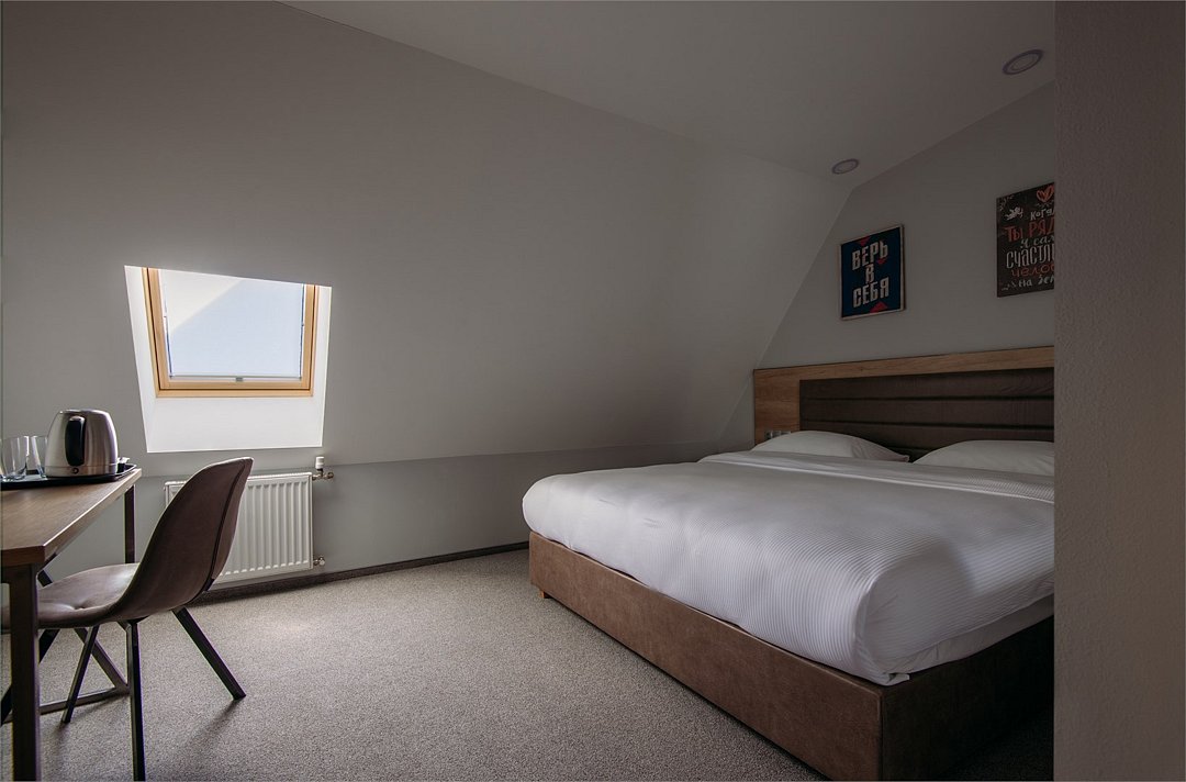 спутниковое телевидение, Wi-Fi, телефон, фен, будильник, ванная комната, душевая кабина, халаты, банные полотенца, гигиенические средства, кровать «King size», ортопедический матрас, шкаф для одежды, две комнаты, чайный набор, сейф, чайник, унитаз, раковина, стул, стол, сплит-система, диван-кровать, раскладной диван, телевизор с плоским экраном, мини-холодильник, мансардные окна, можно с питомцамиВ гостиничном номере