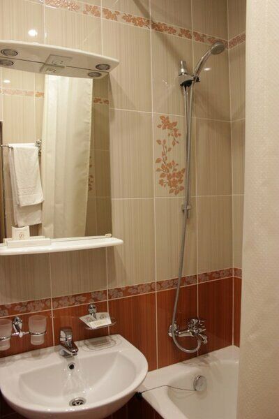 В номере чисто очень, пыли нет нигде, ни на столе, ни на тумбочках. В ванной кафель. Есть шампунь, гель и мыло.