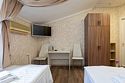 Номер на 4 взрослых с 1 двуспальной кроватью и 2 односпальными кроватями, шкафом, столом, всей необходимой мебелью, кондиционером, телевизором, собственной ванной комнатой с душем, комплектом полотенец и постельным бельем, в стоимость номера входит быстрый wi-fi. Номер расположен на первом этаже с видом во двор.