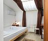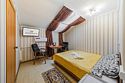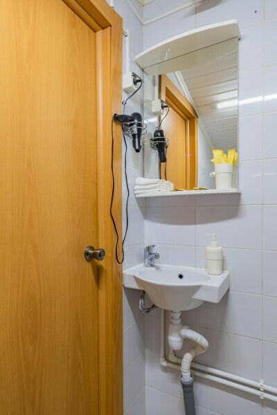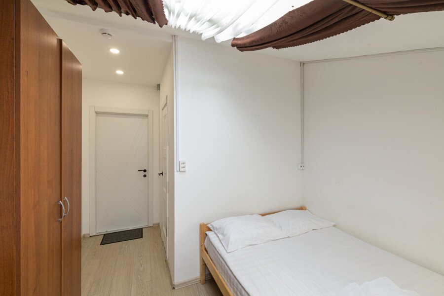 Номер на двоих или одного человека со всеми удобствами, кроватью, столом, телевизором, кондиционером, собственной ванной комнатой. В некоторых номерах окно мансардное.