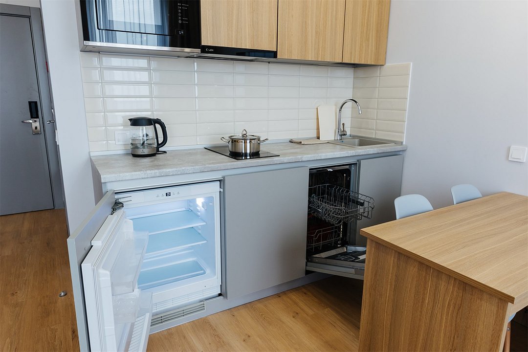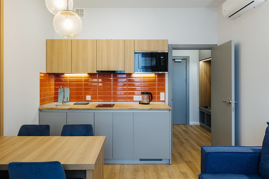 Все номера включают кухню, новую технику, обеденный столик и посуду. В нескольких шагах большое количество точек питания.