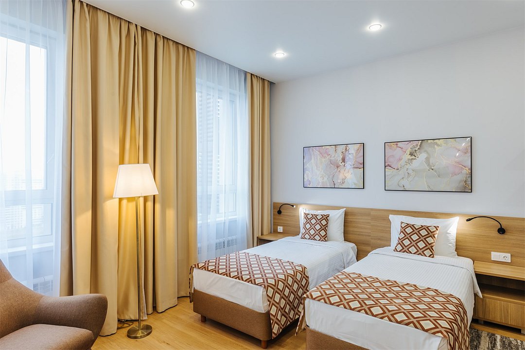 Wi-Fi, телефон, холодильник, кондиционер, фен, электронные замки, плита для приготовления пищи, микроволновая печь, ванная комната, ванна, банные принадлежности, банные полотенца, гигиенические средства, двуспальная кровать, две односпальные кровати, стулья, шкаф для одежды, вешалки, письменный стол, обеденный стол, зеркало, кухня, набор посуды, сейф, минеральная вода, посудомоечная машина, чайник, раковина, мягкая мебель, питьевая вода, обеденная зона, гостиная зона, вид на город, три комнаты, плиточное покрытие, кресло, раздельный санузел, две спальни, ламинат, кухонная посуда, стаканы, столовые приборы, вид на стадион, стул, туалетные средства, туалет, сплит-система, диван-кровать, раскладной диван, мини-кухня, телевизор со Smart TV, рабочий стол, морозильная камера, уборка номера, вешалки-плечики, можно с питомцамиВ гостиничном номере