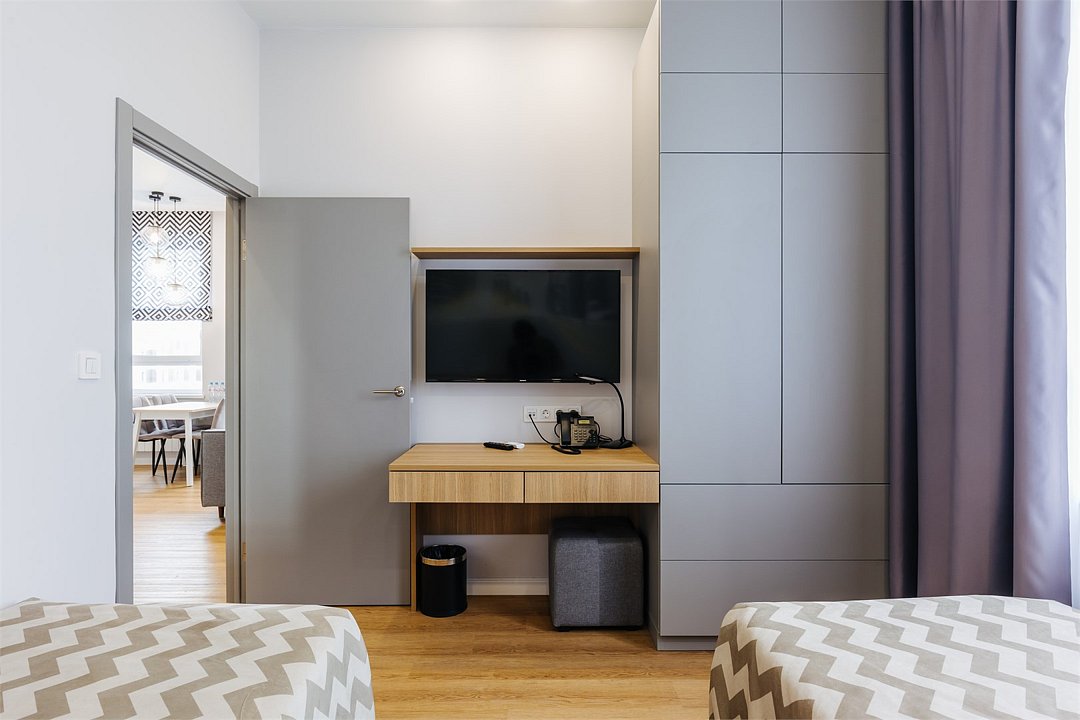 Wi-Fi, телефон, холодильник, кондиционер, фен, электронные замки, плита для приготовления пищи, кофемашина, микроволновая печь, ванная комната, ванна, банные принадлежности, банные полотенца, гигиенические средства, двуспальная кровать, две односпальные кровати, стулья, шкаф для одежды, гардеробная, вешалки, письменный стол, обеденный стол, зеркало, кухня, набор посуды, сейф, минеральная вода, посудомоечная машина, чайник, раковина, мягкая мебель, питьевая вода, обеденная зона, гостиная зона, вид на город, три комнаты, плиточное покрытие, кресло, раздельный санузел, две спальни, ламинат, кухонная посуда, стаканы, столовые приборы, вид на стадион, стул, туалетные средства, туалет, сплит-система, диван-кровать, раскладной диван, мини-кухня, телевизор со Smart TV, рабочий стол, морозильная камера, уборка номера, вешалки-плечики, можно с питомцамиВ гостиничном номере