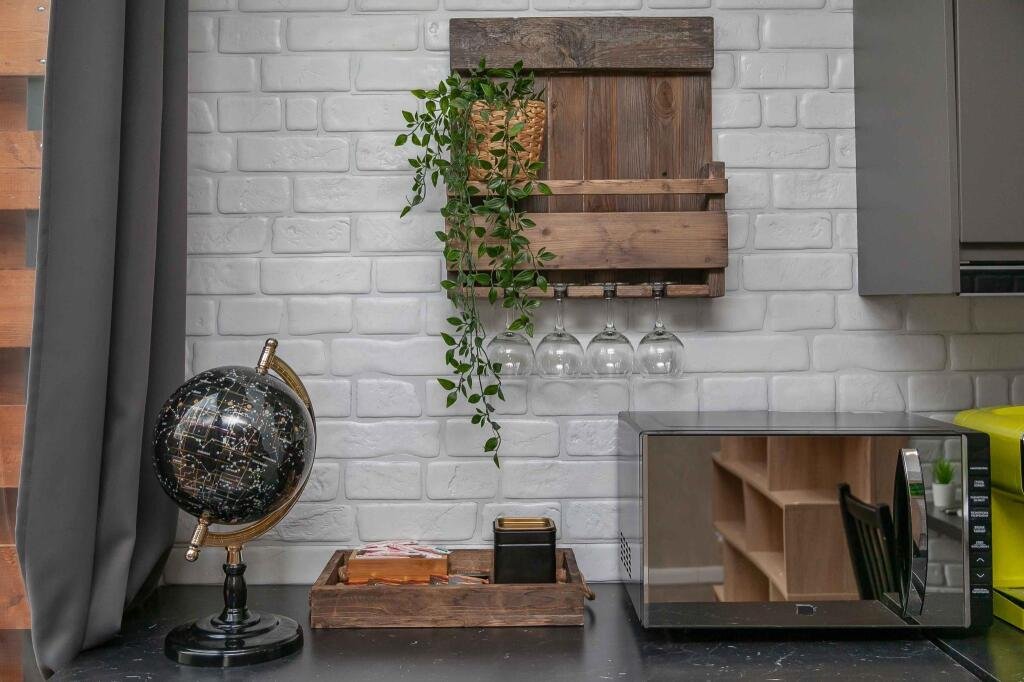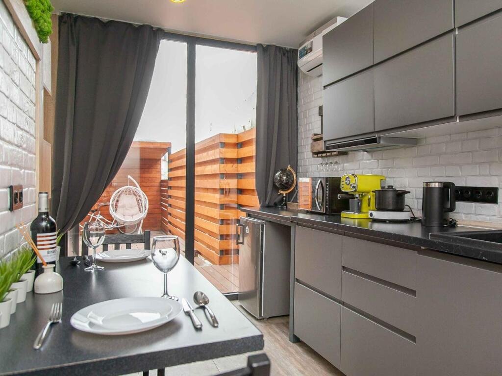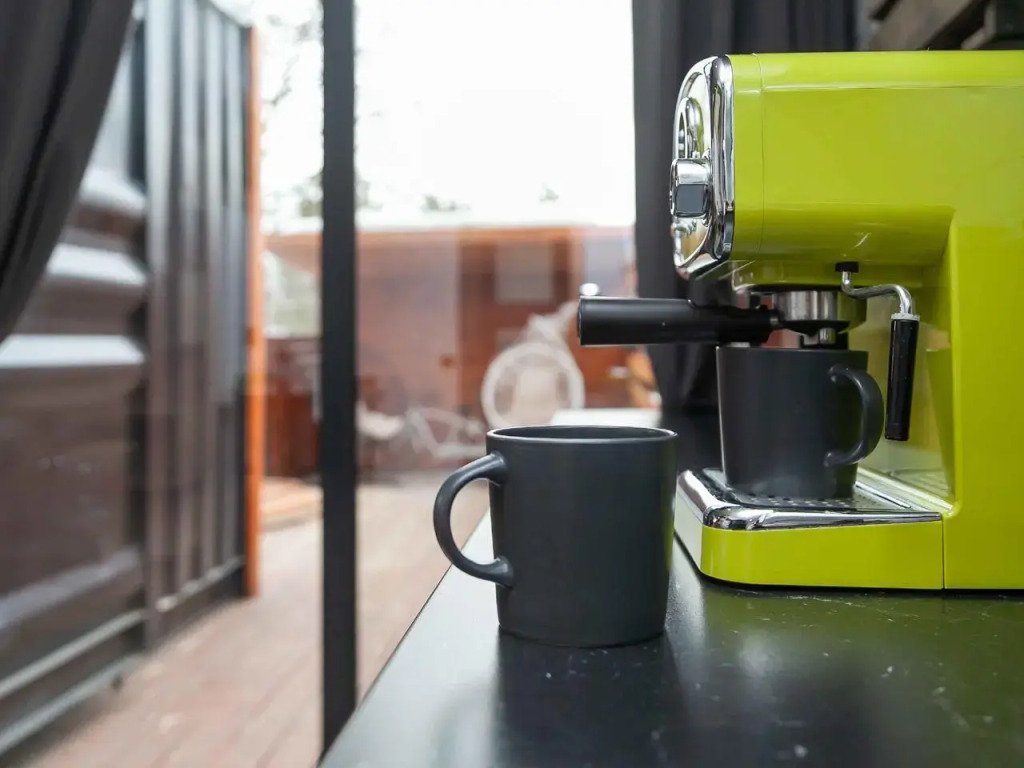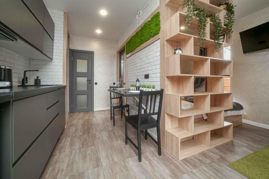 В домике полностью оборудована гостевая кухня (холодильник, микроволновка, плита, чайник, кофеварка и т.д).