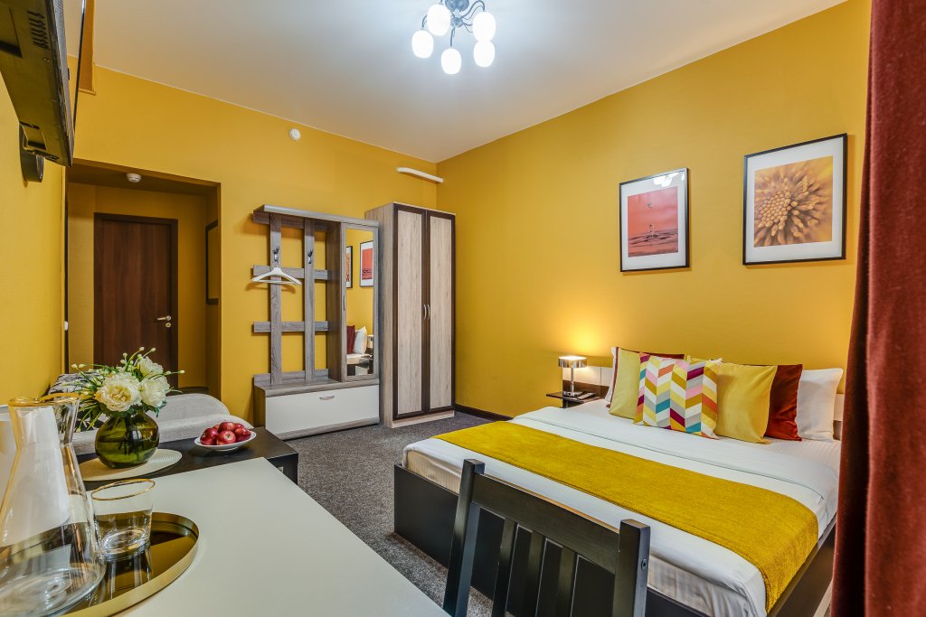 Номер уютно обставлен и оснащён необходимым, чтобы отдохнуть после долгого и насыщенного дня. Имеются телевизор. Перечисленные услуги есть не во всех номерах.