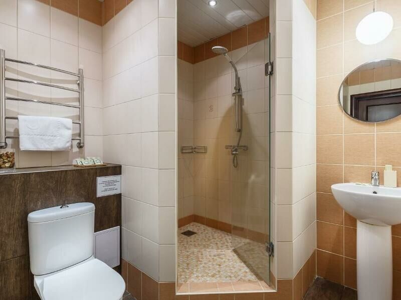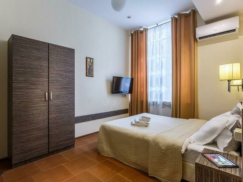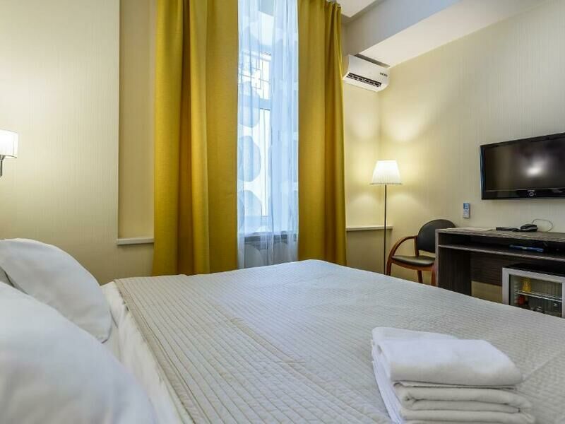 В номерах современный интерьер, выдержанный преимущественно в светлых оттенках, везде есть кондиционер, санузел с душем, а также техника — телевизор, фен.