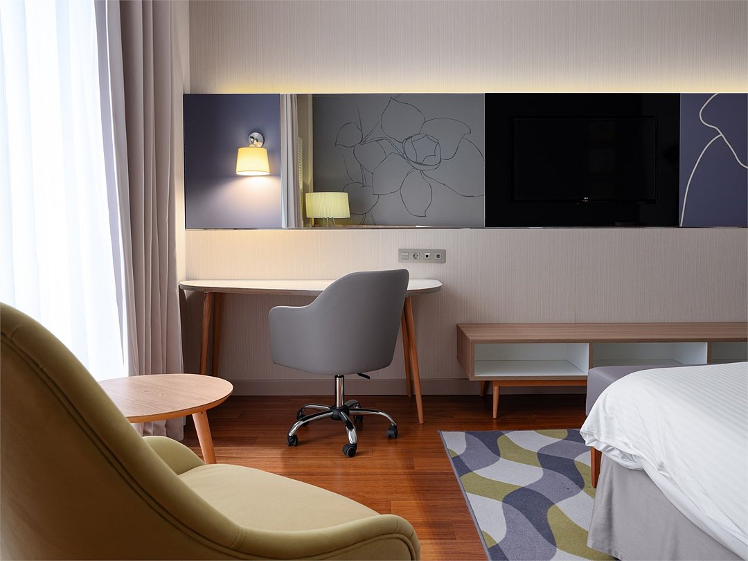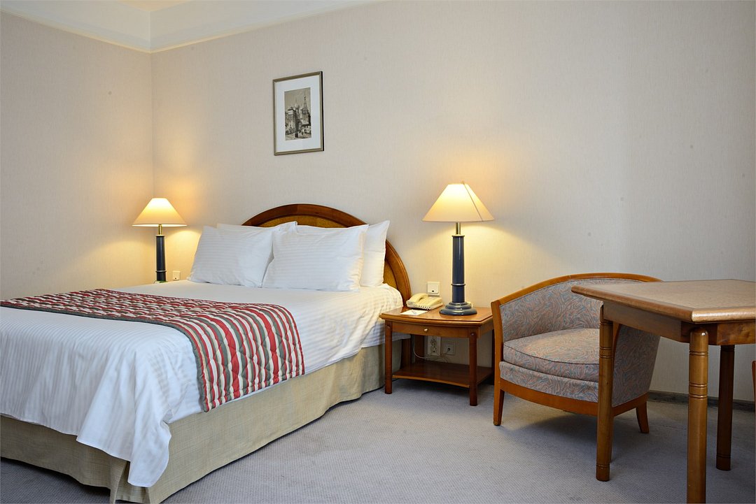 Просторный и уютный стандартный номер с кроватью Queen-size площадью 30 м² идеально подходит как для деловых путешественников, так и для отдыха. К услугам гостей ванная комната с ванной и биде, рабочее место, журнальный стол с удобными креслами, бесплатный Wi-Fi и все необходимое для комфортного проживания.Услуги и удобства