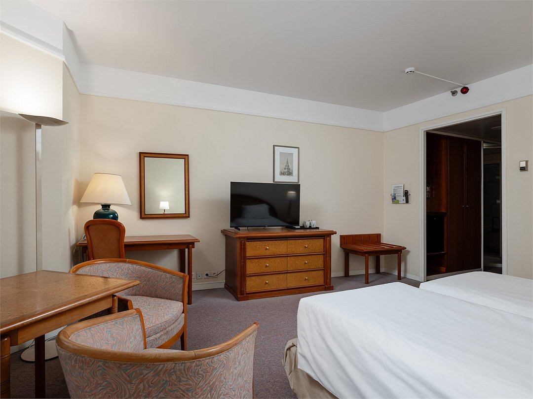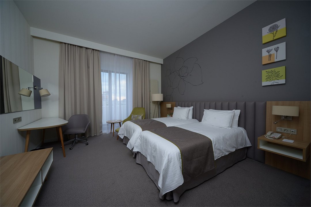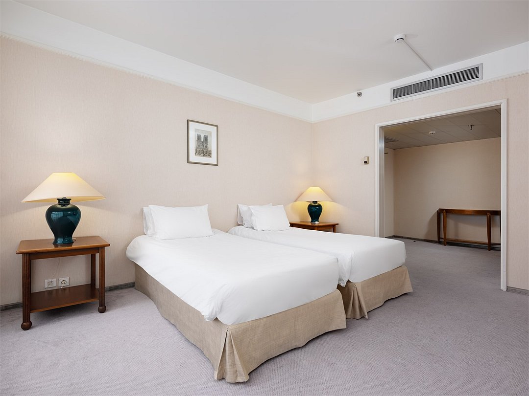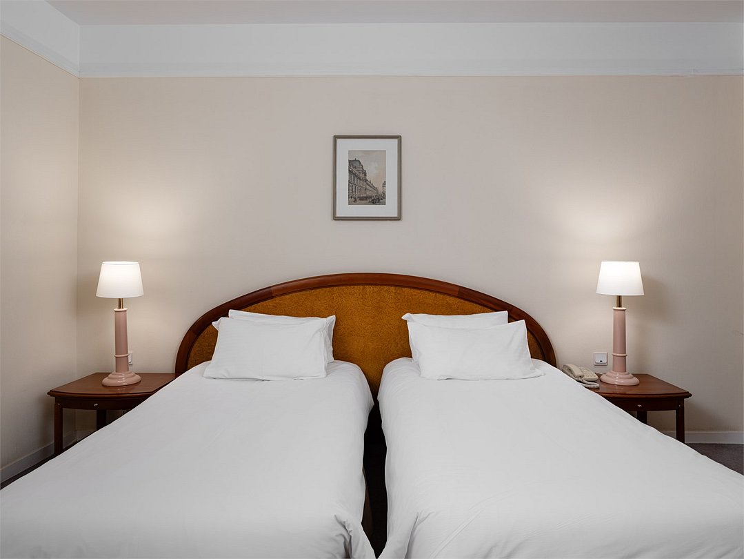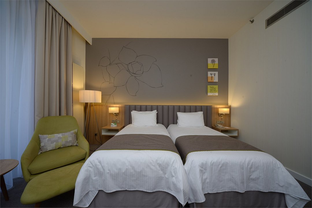 Просторный и уютный стандартный номер с 2 раздельными кроватями площадью 30 м² идеально подходит как для деловых путешественников, так и для отдыха. К услугам гостей ванная комната с ванной и биде, рабочее место, журнальный стол с удобными креслами, бесплатный Wi-Fi и все необходимое для комфортного проживания.Услуги и удобства