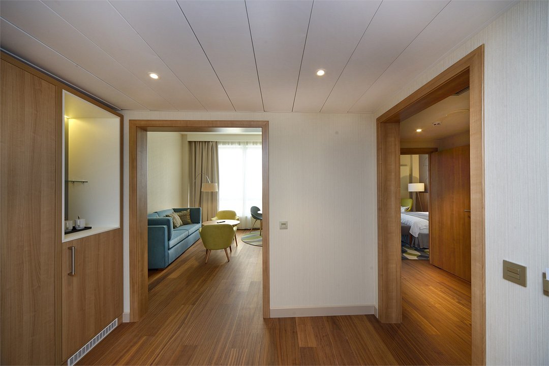 В нашем Семейном люксе площадью 60 м2 можно удобно разместиться всей семьей – в Вашем распоряжении просторная спальня, а также отдельная комната с двумя раздельными кроватями, где могут расположиться маленькие путешественники, чувствуя себя безопасно и комфортно.Услуги и удобства