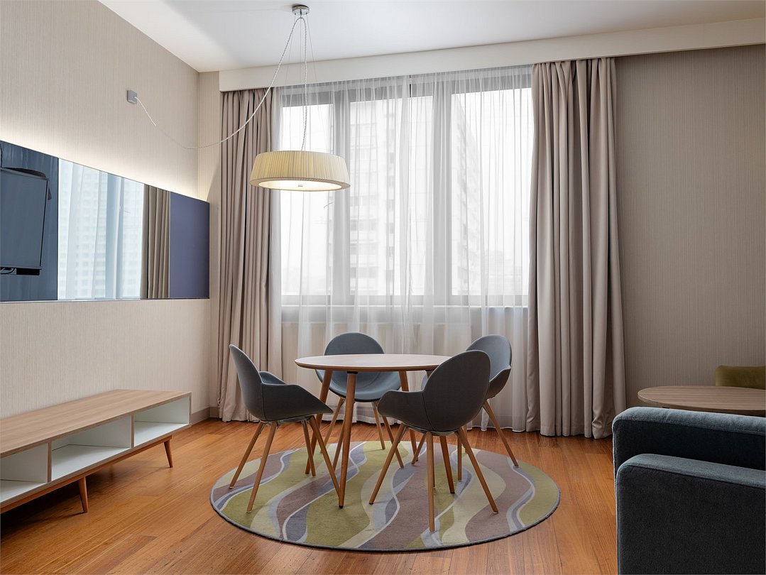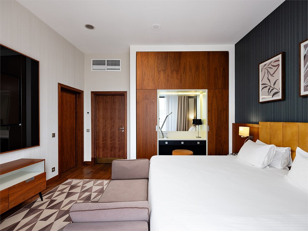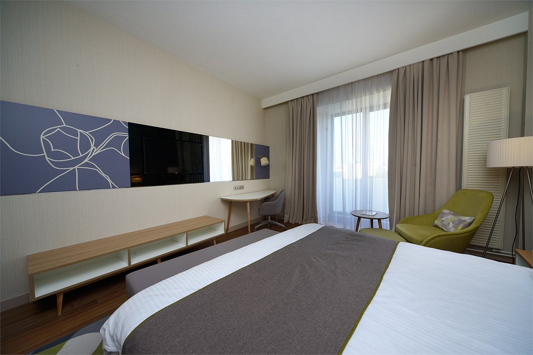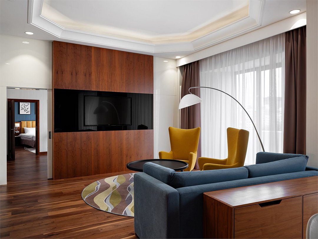 Улучшенный номер с удобной двуспальной кроватью размера King-size площадью 30 м2 идеально подходит для отдыха после тяжелого дня или длительного путешествия. Насладитесь чашечкой ароматного кофе, приготовленного в кофе-машине и почитайте книгу, расположившись в комфортабельном кресле. Ежедневно с 12:00 до 22:00 в Вашем распоряжении Клубная гостиная с легкими закусками и напитками, где можно полностью расслабиться и отдохнуть от городской суеты.Услуги и удобства