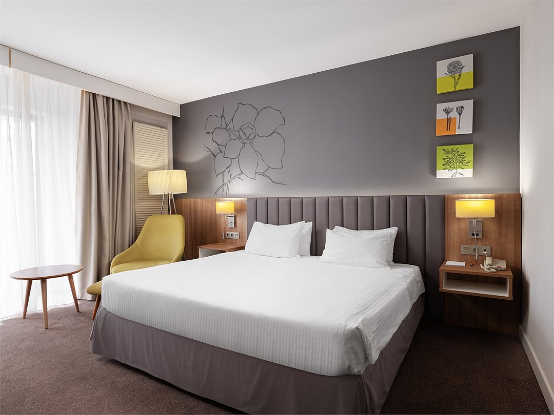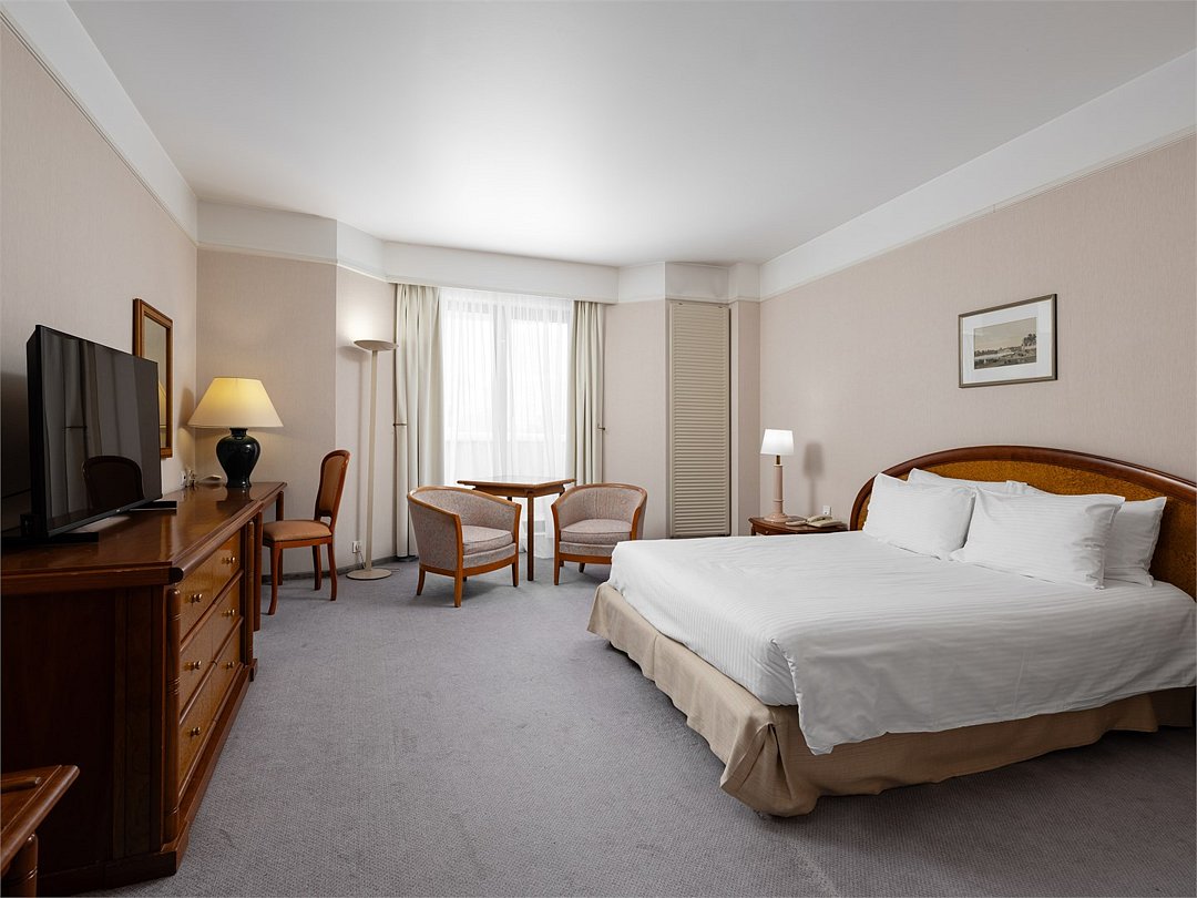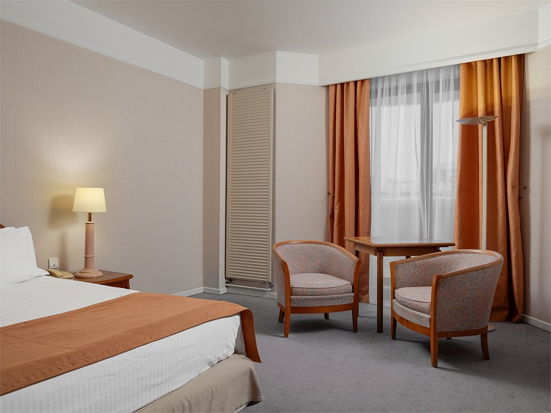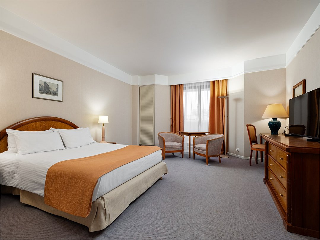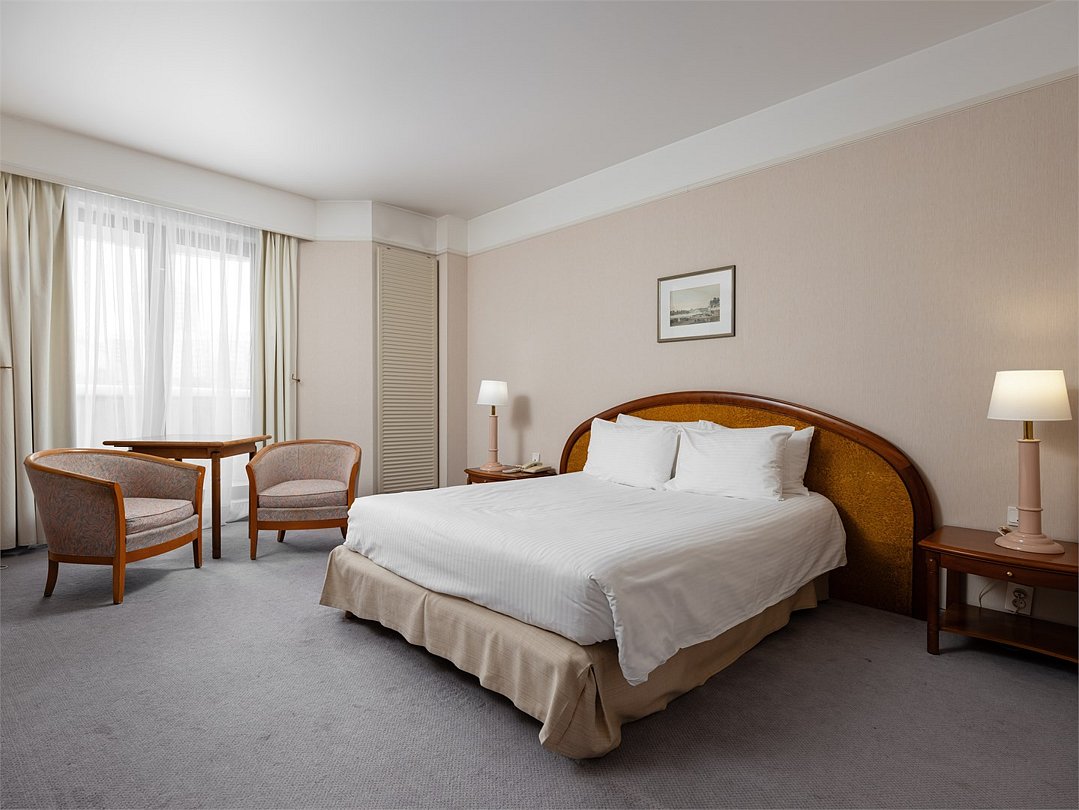 Насладитесь пребыванием в современном, недавно реновированном номере Улучшенной категории c кроватью King-size или 2 раздельными кроватями площадью 30 м2. Завершите все незаконченные дела за удобным рабочим местом, а затем отдохните после тяжелого дня, почитайте любимую книгу, сидя на комфортабельном кресле или примите расслабляющую ванну или душ.Услуги и удобства