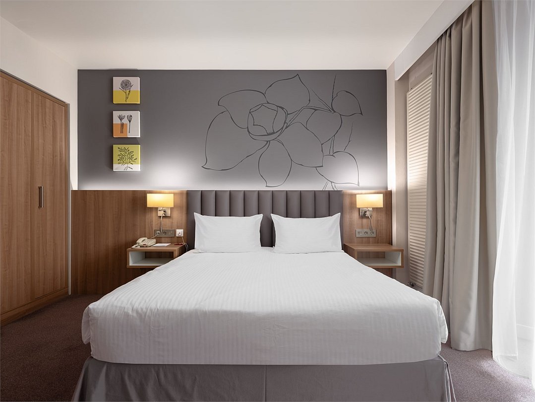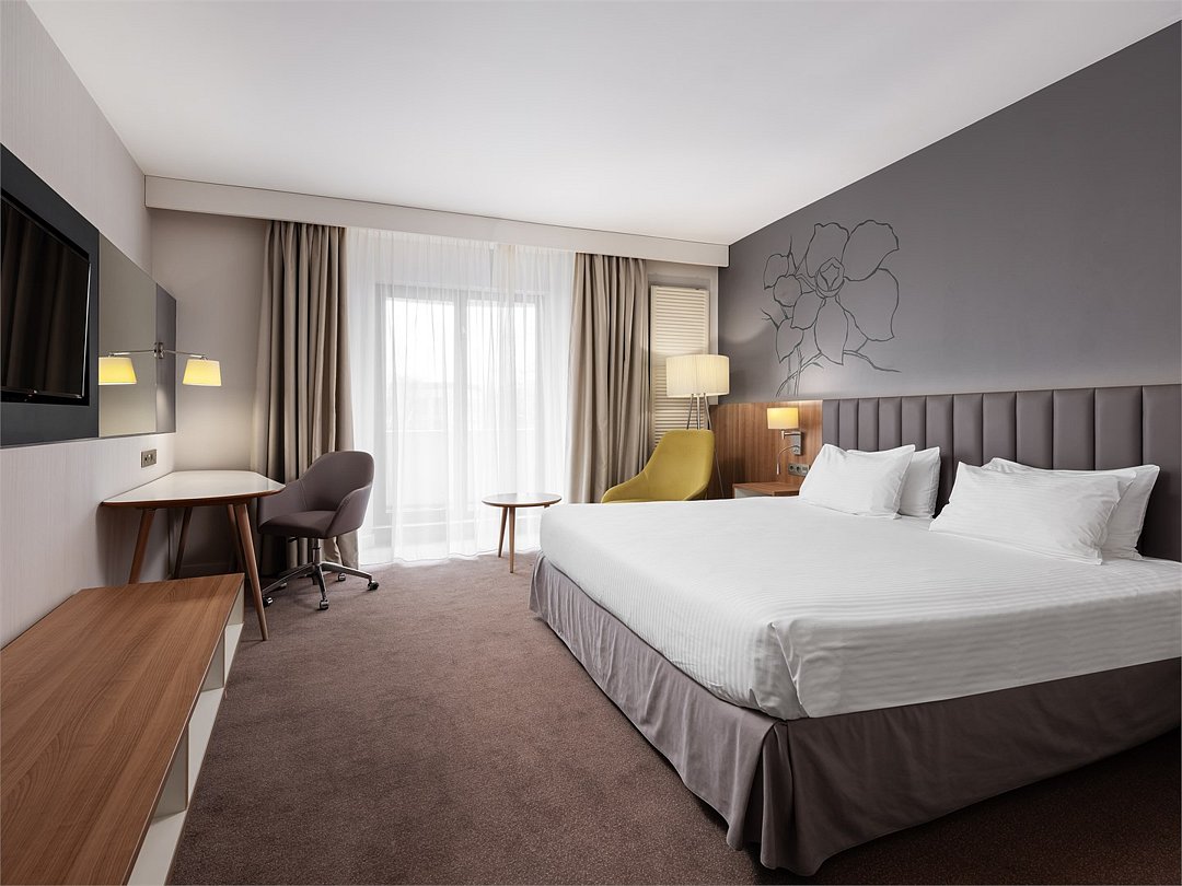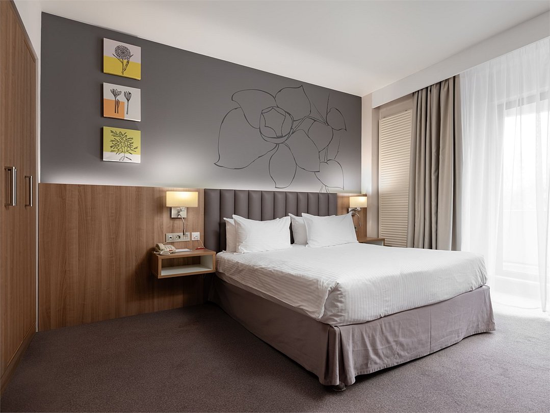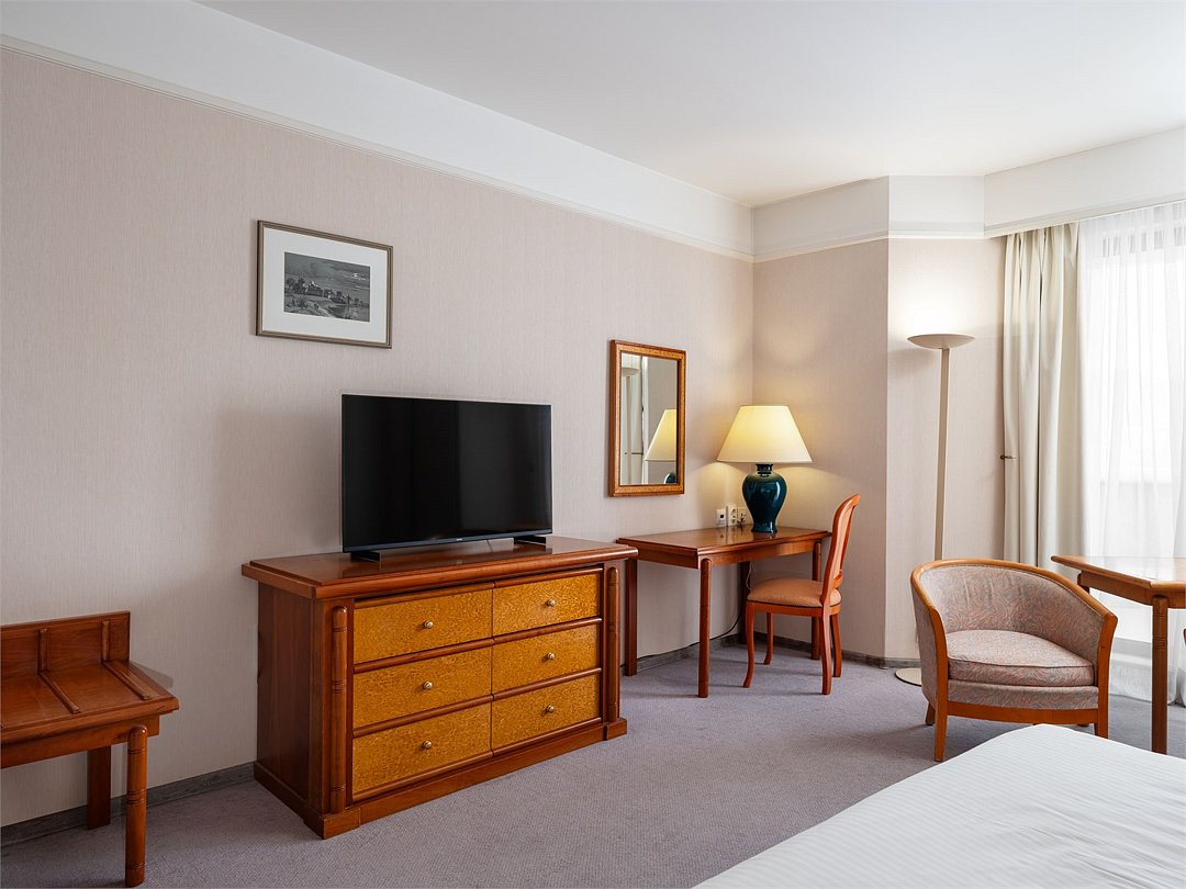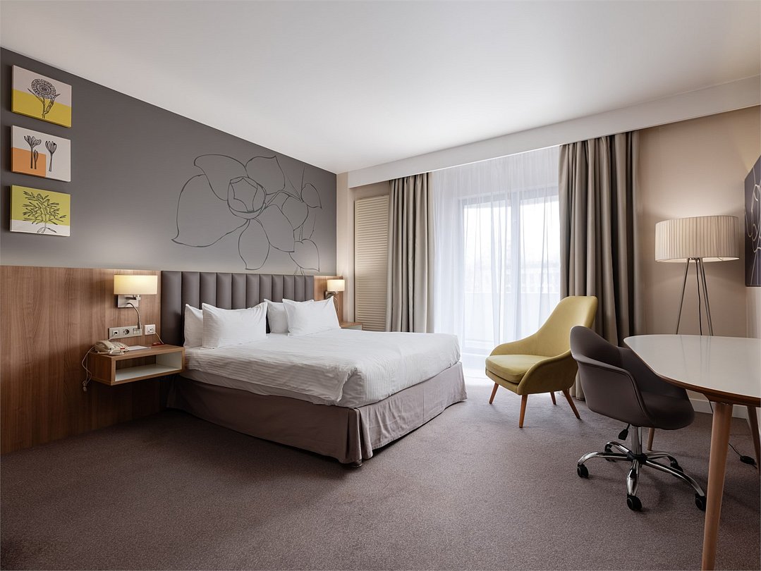 Насладитесь пребыванием в современном, недавно реновированном номере Улучшенной категории c кроватью King-size или 2 раздельными кроватями площадью 30 м2. Завершите все незаконченные дела за удобным рабочим местом, а затем отдохните после тяжелого дня, почитайте любимую книгу, сидя на комфортабельном кресле или примите расслабляющую ванну или душ.Услуги и удобства