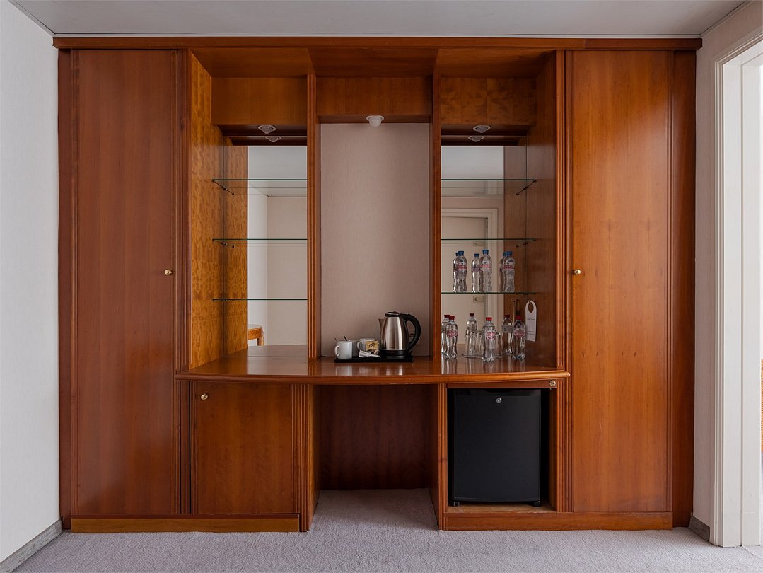 Wi-Fi, холодильник, кондиционер, фен, плита для приготовления пищи, кофемашина, микроволновая печь, утюг, ванная комната, дополнительный санузел, халаты, банные полотенца, тапочки, косметические средства, балкон, кровать «King size», гладильная доска, диван, кресла, стулья, шкаф для одежды, гардеробная, вешалки, письменный стол, комод, набор посуды, сейф, раковина, косметическое зеркало, гостиная зона, отопление, душ, кабинет, стаканы, туалет, внутренний телефон, мини-кухня, номер для некурящих, три телевизора, рабочий стол, джакузи, вешалки-плечики, шапочка для душа, мыло, прачечная (за дополнительную плату), можно с питомцамиВ гостиничном номере