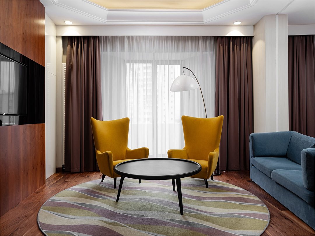 Наш просторный и недавно реновированный Люкс площадью 60 м2 идеально подходит для современных путешественников, которые ценят стиль и комфорт в интерьере. В номере есть спальня, удобное рабочее место, а также отдельная гостиная с вместительным диваном и телевизором. Насладитесь чашечкой ароматного кофе, приготовленного в кофе-машине и почитайте книгу, расположившись в комфортабельном кресле. Ежедневно с 12:00 до 22:00 в Вашем распоряжении Клубная гостиная с легкими закусками и напитками, где можно полностью расслабиться и отдохнуть от городской суеты.Услуги и удобства