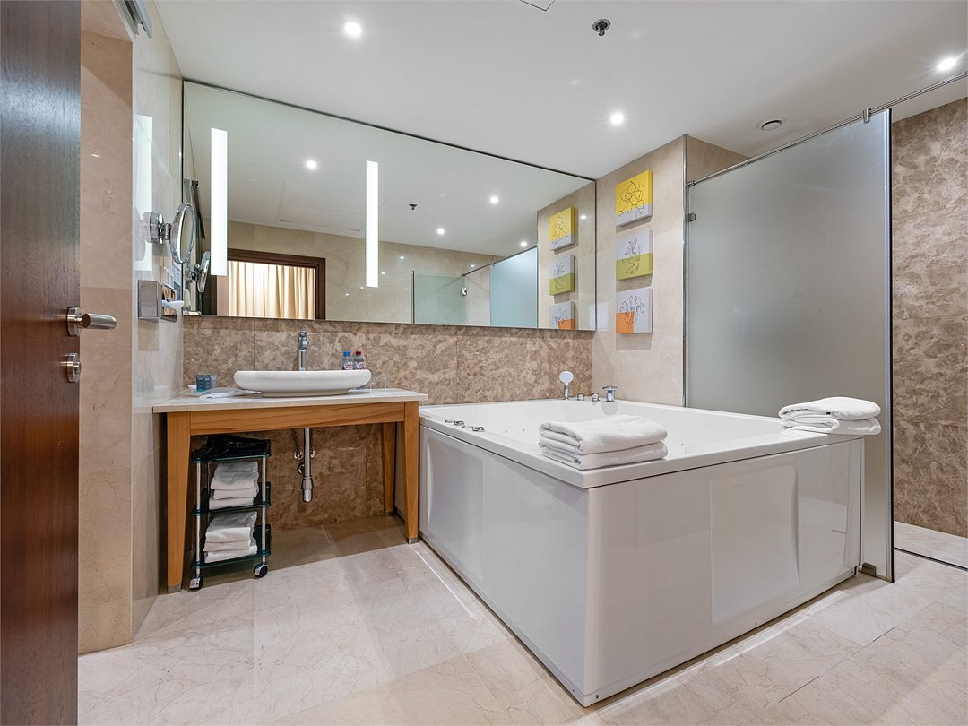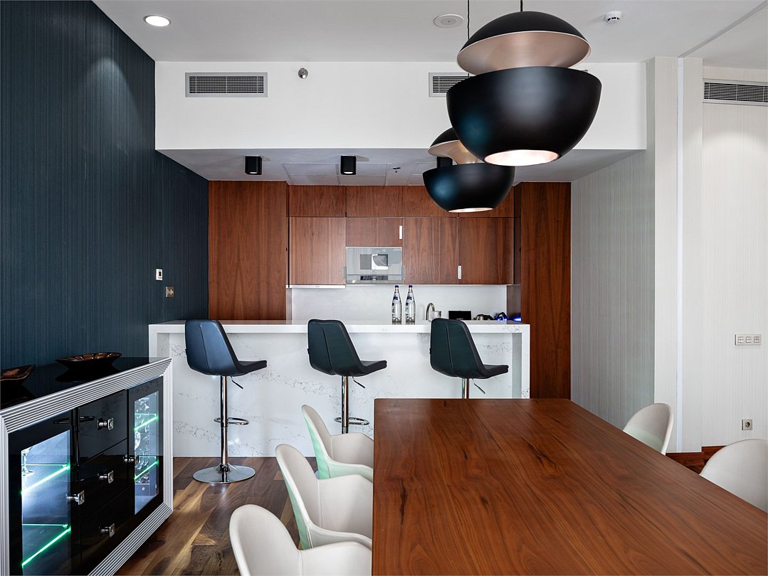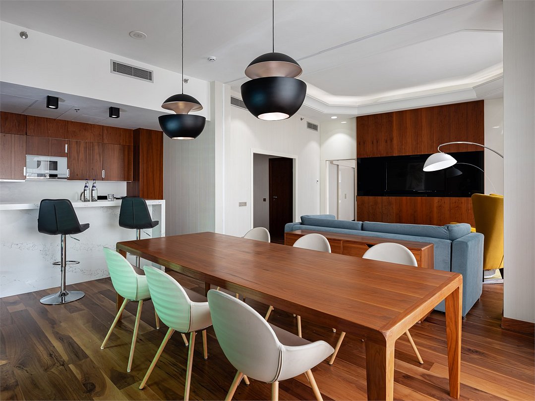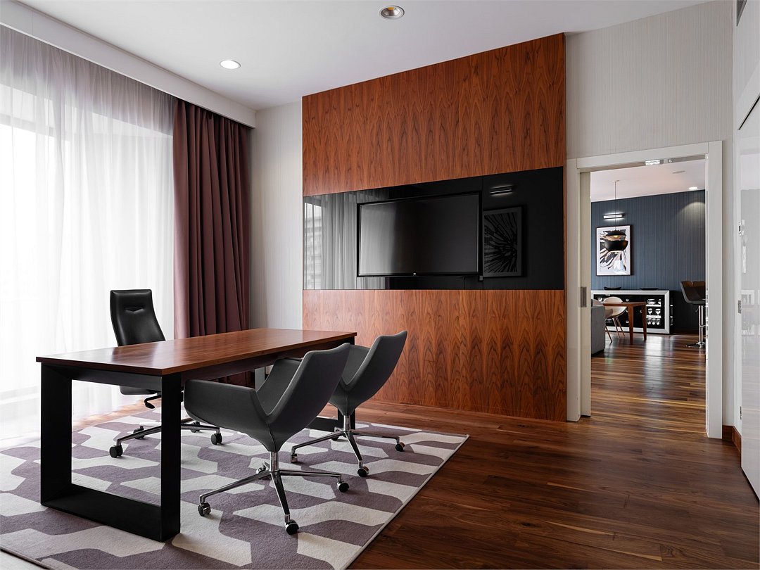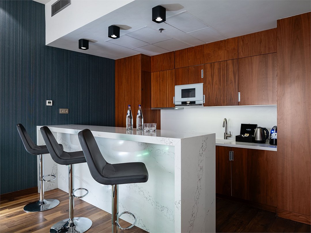 Элегантный и современный Президентский люкс площадью 120 м² - это идеальное место для максимально комфортного отдыха. Уютная спальня, многофункциональная гостиная, полностью оборудованная кухня, кабинет и ванная комната с джакузи и тропическим душем сделают Ваше пребывание незабываемым. Ежедневно с 12:00 до 22:00 в Вашем распоряжении Клубная гостиная с легкими закусками и напитками, где можно полностью расслабиться и отдохнуть от городской суеты.Услуги и удобства