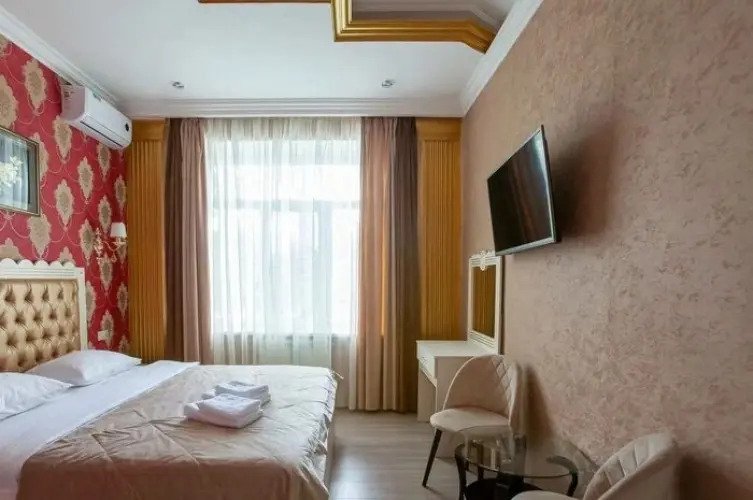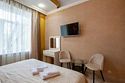 Номер уютно обставлен и оснащён необходимым, чтобы отдохнуть после долгого и насыщенного дня. Имеются телевизор и халат. Оснащение зависит от выбранной категории номера.