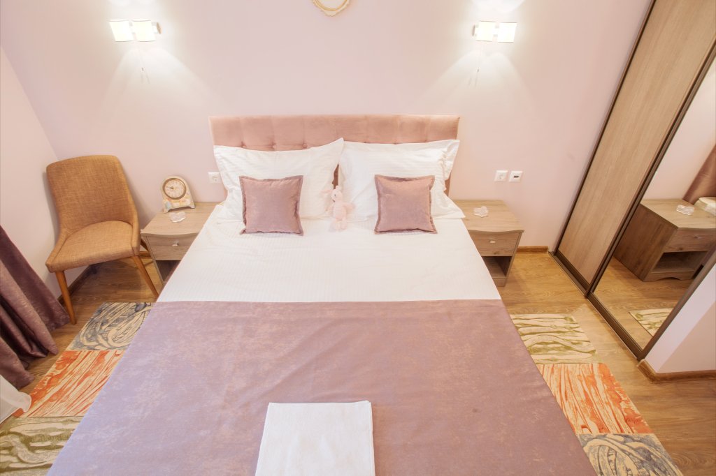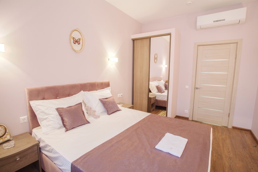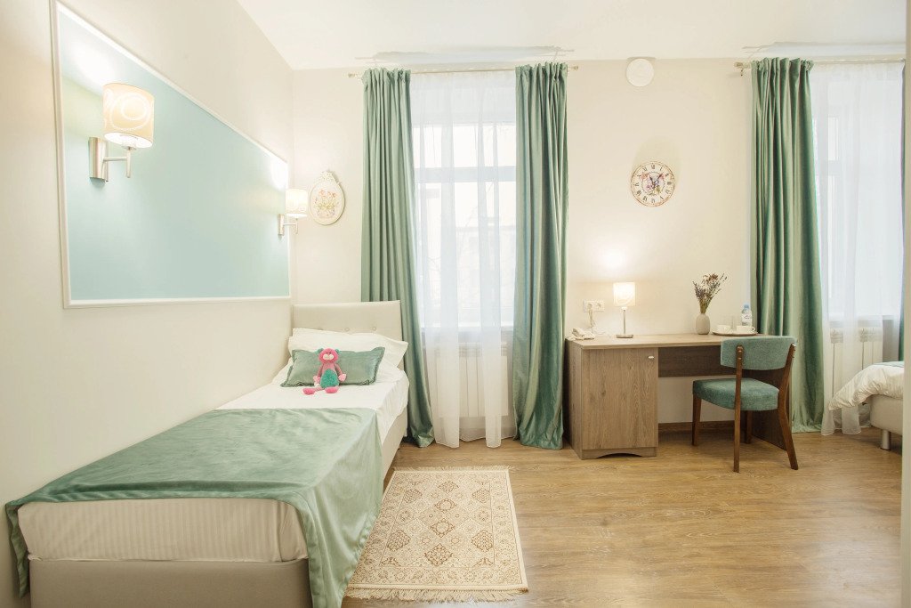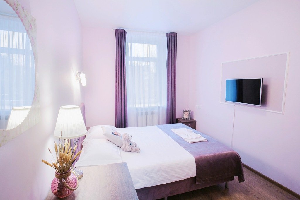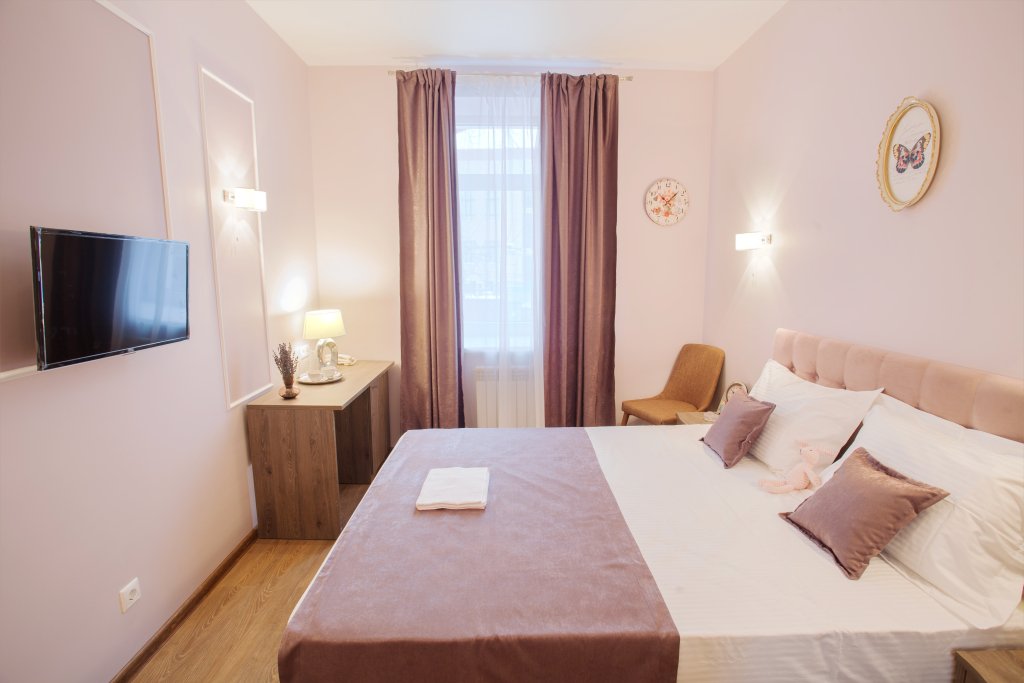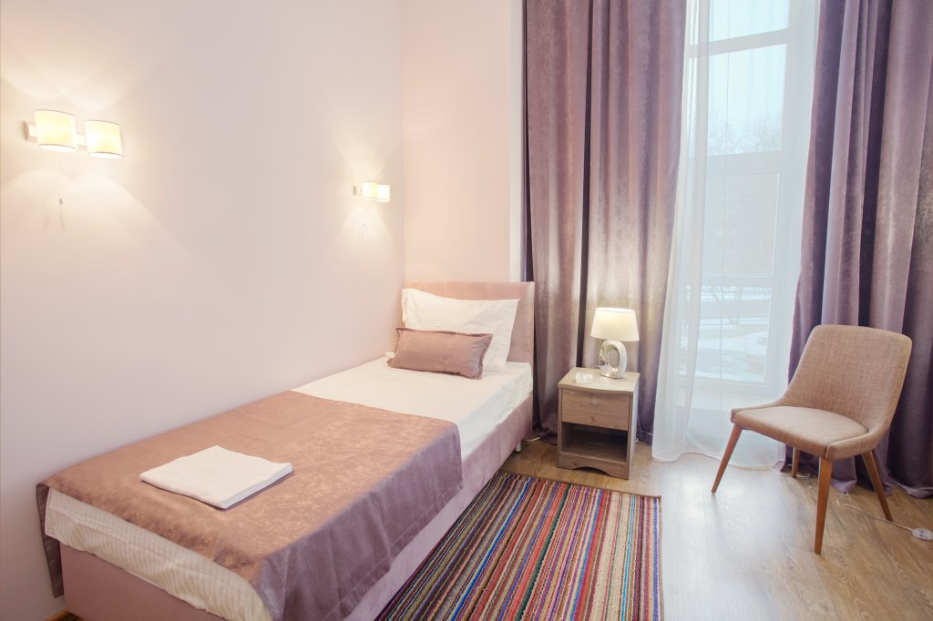 Номер уютно обставлен и оснащён необходимым, чтобы отдохнуть после долгого и насыщенного дня. Имеются телевизор и халат. Оснащение зависит от выбранной категории номера.
