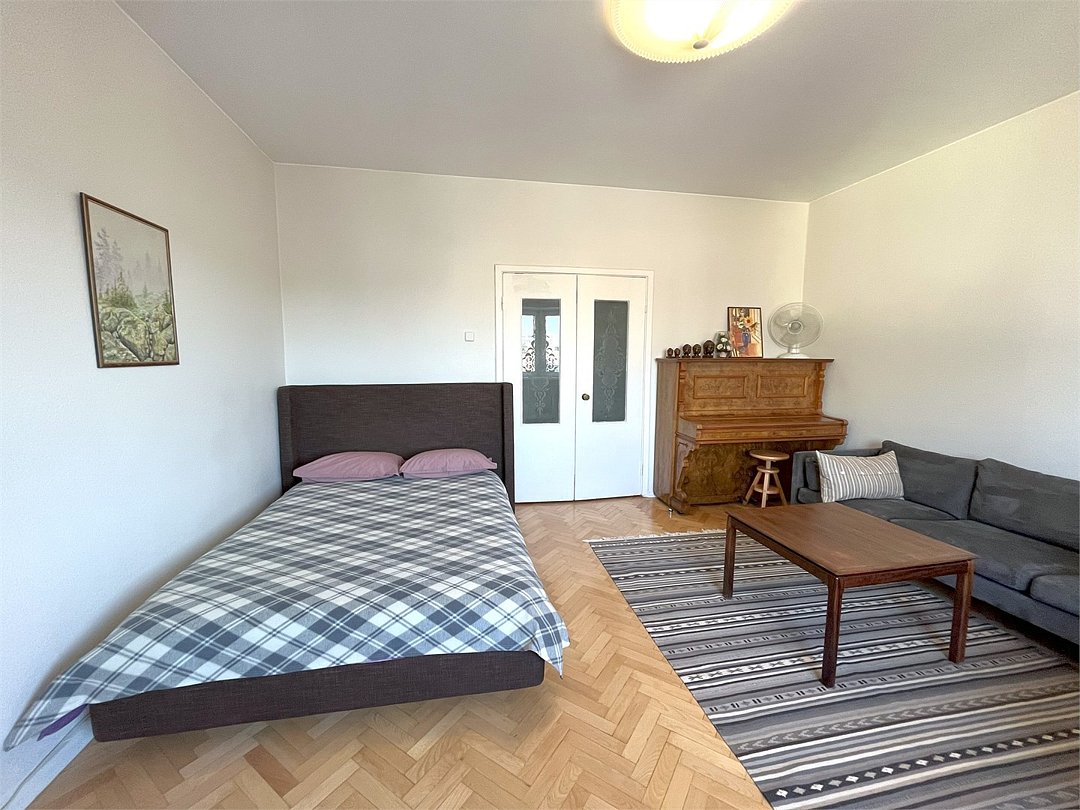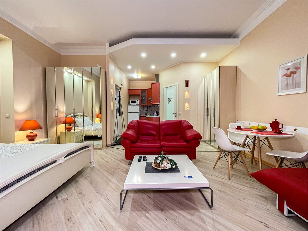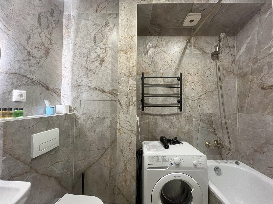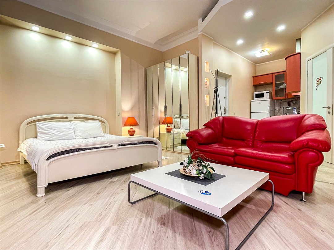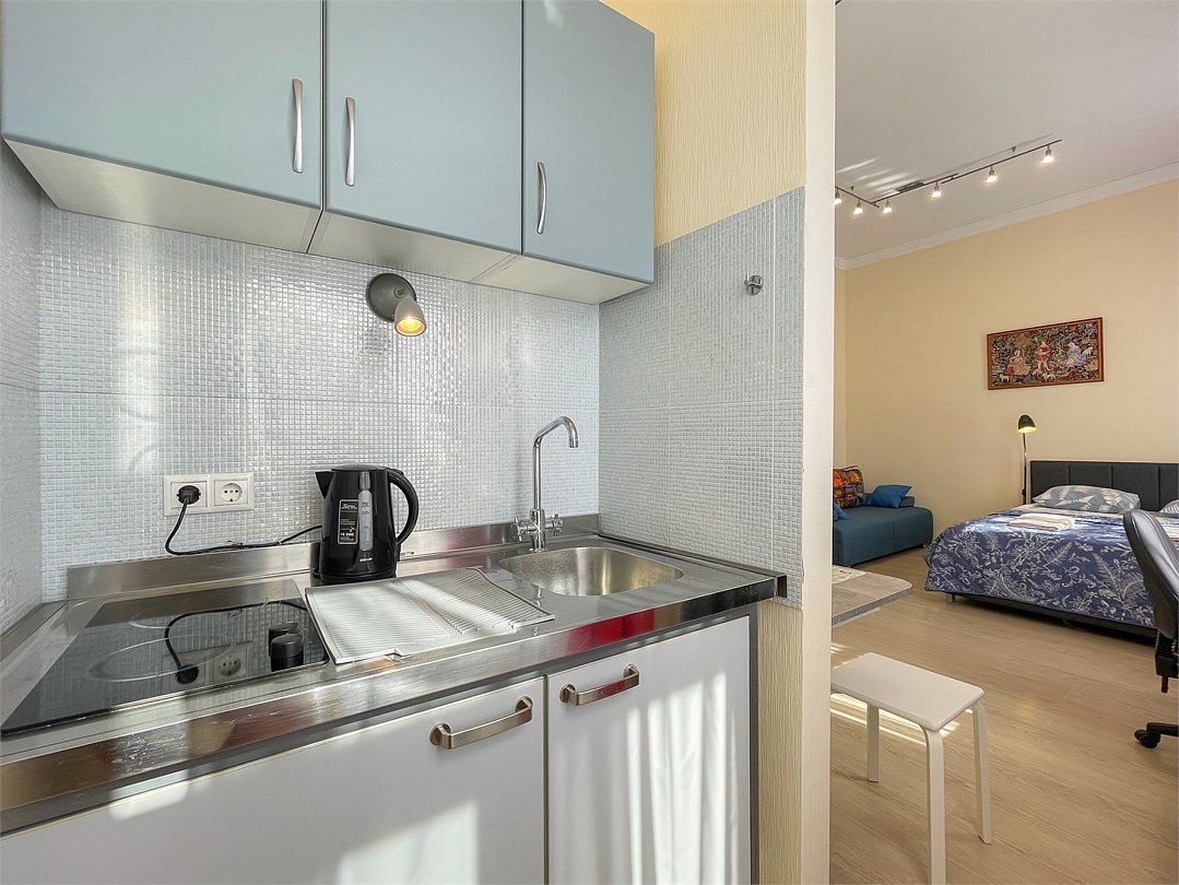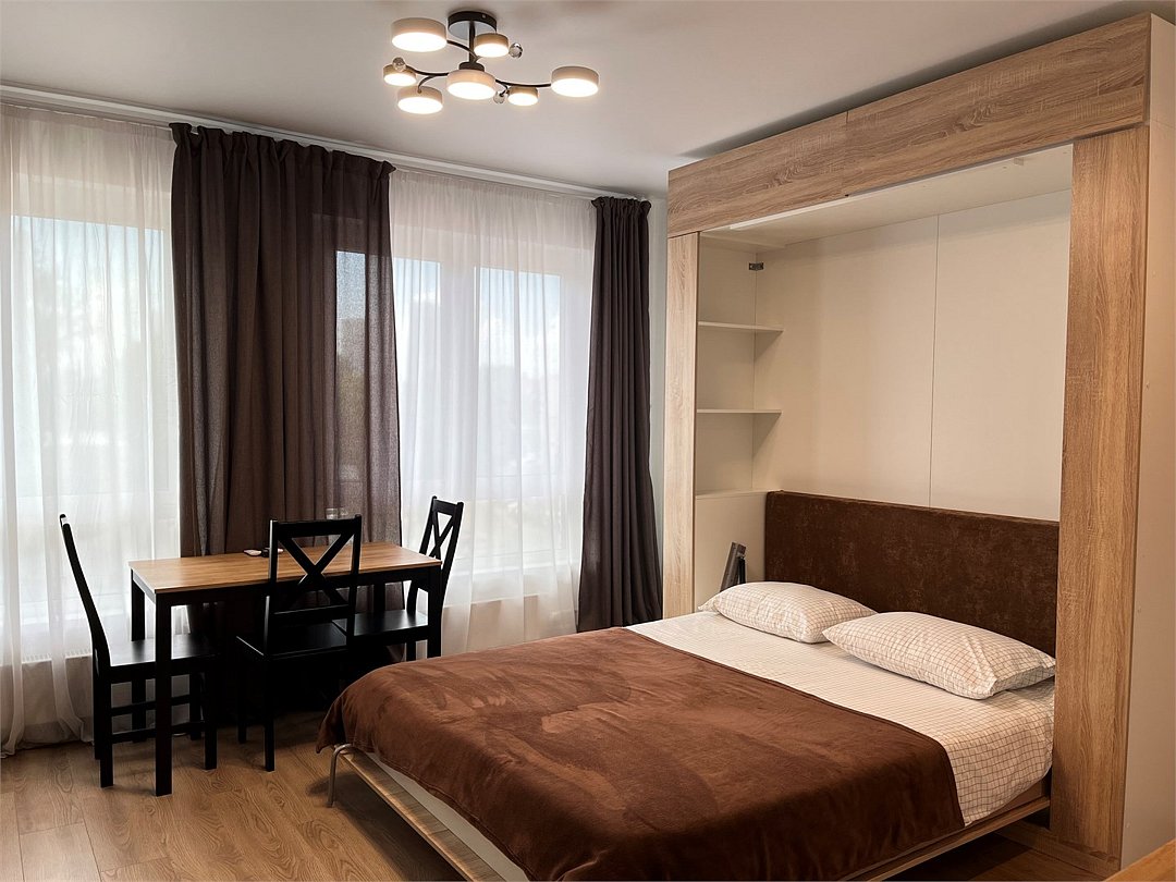 Wi-Fi, кондиционер, светильник, фен, плита для приготовления пищи, микроволновая печь, утюг, водонагреватель, банные полотенца, двуспальная кровать, гладильная доска, стулья, шкаф для одежды, журнальный столик, письменный стол, обеденный стол, зеркало, набор посуды, стиральная машина, чайник, унитаз, раковина, мягкая мебель, отопление, душ, вид на город, кресло, высокие потолки, кухонная посуда, кухонная утварь, столовые приборы, туалетные средства, цифровое тв, диван-кровать, раскладной диван, телевизор с плоским экраном, мини-холодильник, мини-кухня, телевизор со Smart TV, вешалки-плечики, без питомцевВ студии