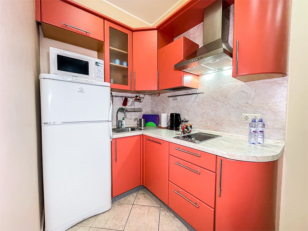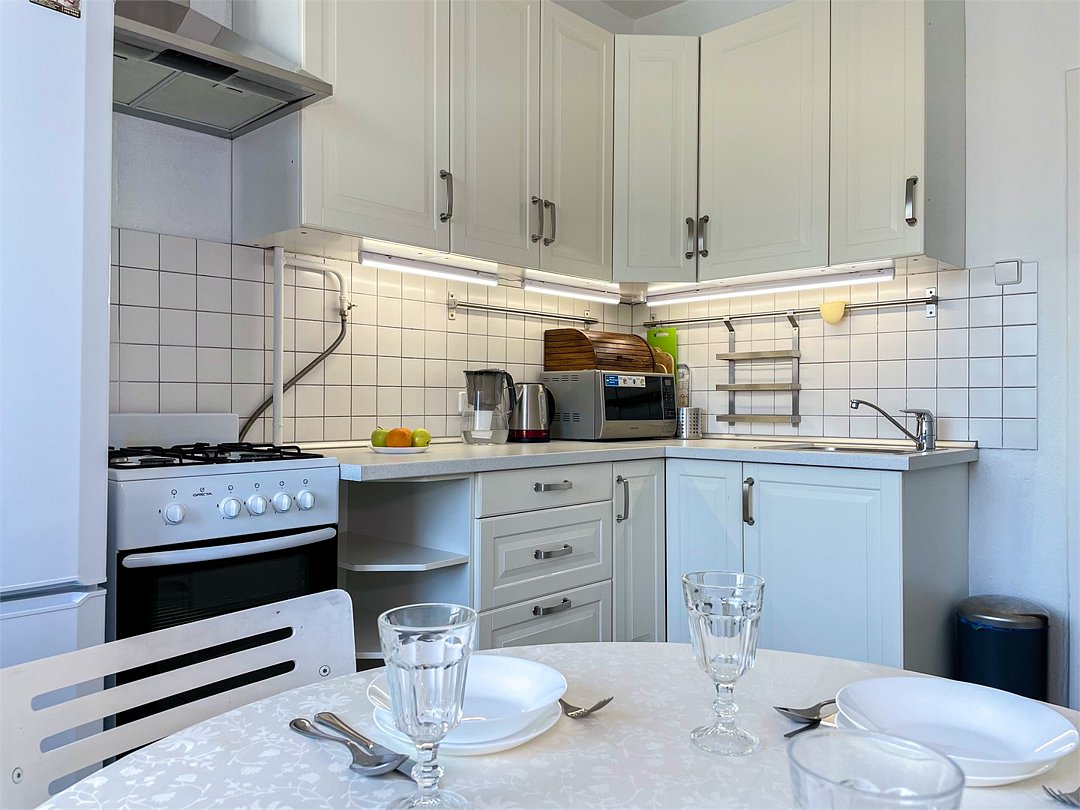 телевизор, Wi-Fi, холодильник, фен, плита для приготовления пищи, микроволновая печь, утюг, обогреватель, балкон, двуспальная кровать, гладильная доска, стулья, шкаф для одежды, вешалки, зеркало, кухня, набор посуды, стиральная машина, чайник, унитаз, раковина, отопление, душ, вид на город, вид во двор, кухонная посуда, стаканы, кухонная утварь, столовые приборы, стул, туалетные средства, диван-кровать, раскладной диван, москитная сетка, шкаф-купе, телевизор со Smart TV, вешалки-плечики, без питомцевВ квартире