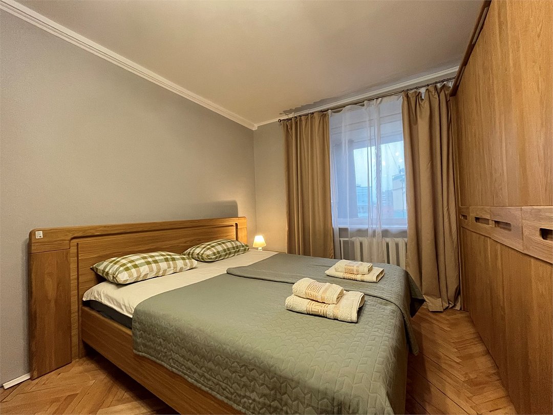 телевизор, два телевизора, кабельное телевидение, Wi-Fi, холодильник, светильник, настольные лампы, фен, микроволновая печь, утюг, обогреватель, ванная комната, ванна, санузел, банные полотенца, косметические средства, балкон с красивым видом, две двуспальные кровати, гладильная доска, диван, кресла, шкаф для одежды, гардеробная, вешалки, журнальный столик, обеденный стол, зеркало, мебельный гарнитур, две комнаты, набор посуды, стиральная машина, унитаз, раковина, мягкая мебель, косметическое зеркало, отопление, вид на город, кресло, кухонная посуда, стаканы, кухонная утварь, столовые приборы, стиральная машина и сушилка, стул, тумба, туалетные средства, туалет, сушилка для белья, диван-кровать, раскладной диван, шкаф-купе, духовой шкаф, духовка, без питомцевВ квартире
