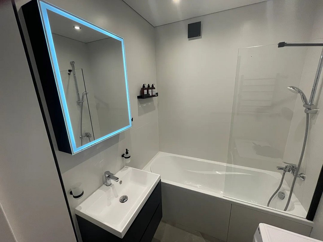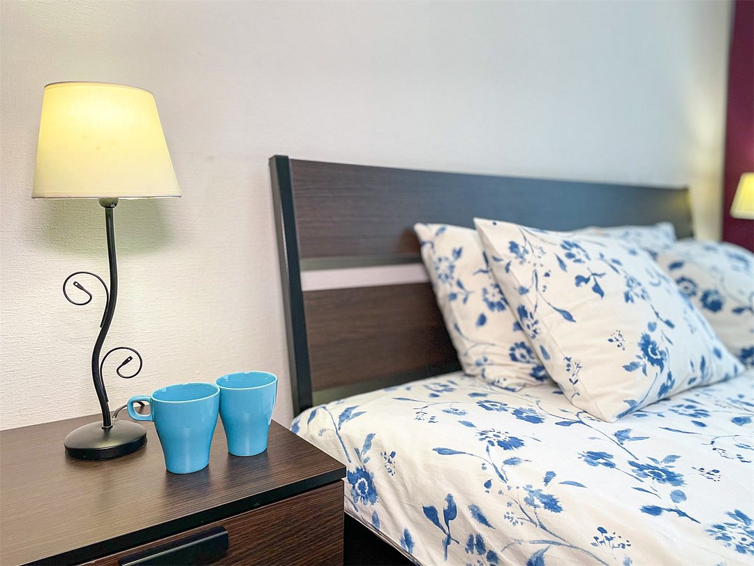 Wi-Fi, холодильник, кондиционер, светильник, настольные лампы, фен, плита для приготовления пищи, микроволновая печь, утюг, обогреватель, санузел, водонагреватель, балкон, лоджия, двуспальная кровать, гладильная доска, стулья, шкаф для одежды, вешалки, журнальный столик, письменный стол, обеденный стол, зеркало, набор посуды, посудомоечная машина, стиральная машина, чайник, унитаз, раковина, мягкая мебель, отопление, душ, вид на сад, вид на город, кресло, паркет, кухонная посуда, стаканы, кухонная утварь, столовые приборы, стул, тумба, туалетные средства, цифровое тв, диван-кровать, раскладной диван, телевизор с плоским экраном, вешалки-плечики, мыло, без питомцевВ квартире