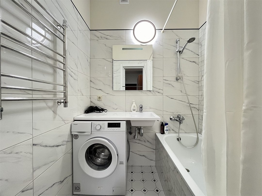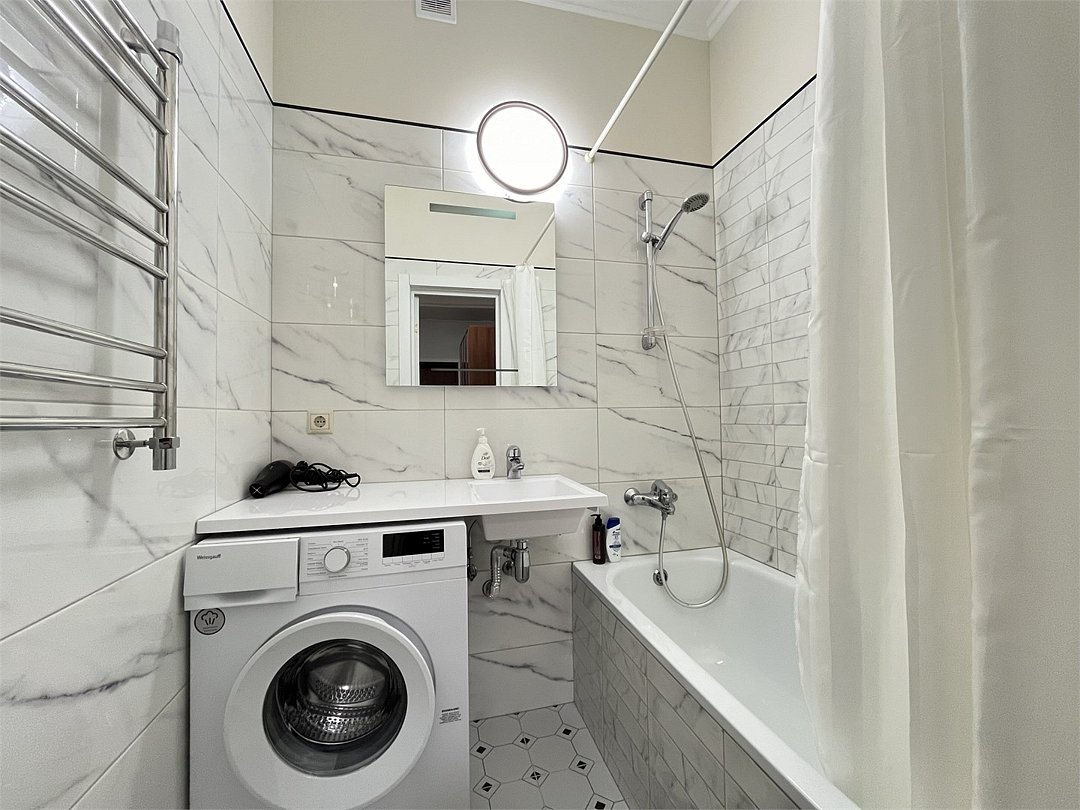 два телевизора, Wi-Fi, холодильник, кондиционер, светильник, фен, плита для приготовления пищи, микроволновая печь, утюг, обогреватель, ванная комната, душевая кабина, теплый пол, банные принадлежности, двуспальная кровать, гладильная доска, диван, стулья, шкаф для одежды, вешалки, барная стойка, кухня, набор посуды, посудомоечная машина, стиральная машина, чайник, унитаз, раковина, отопление, вид во двор, высокие потолки, столовые приборы, стиральная машина и сушилка, стол, сушилка для белья, цифровое тв, диван-кровать, раскладной диван, телевизор с плоским экраном, номер для некурящих, двуспальный раскладной диван-кровать, без питомцевВ квартире