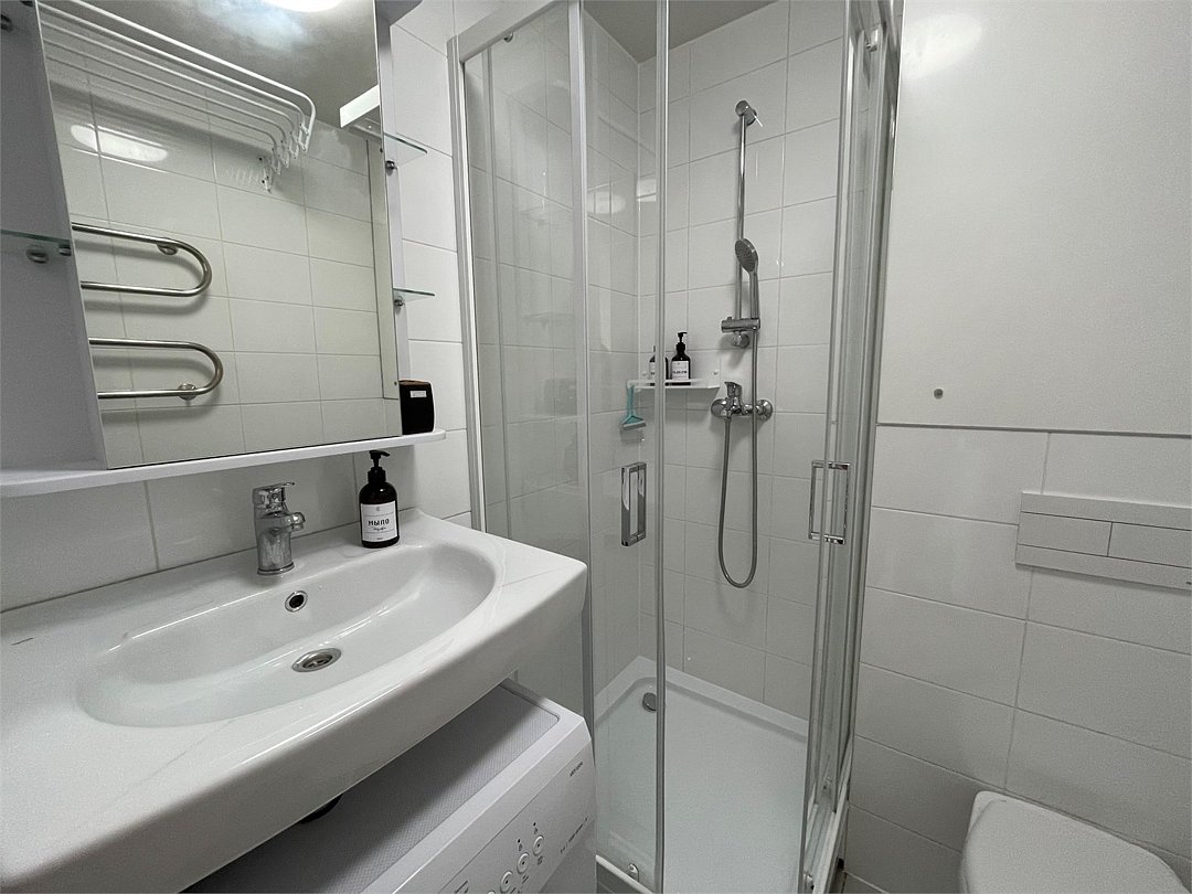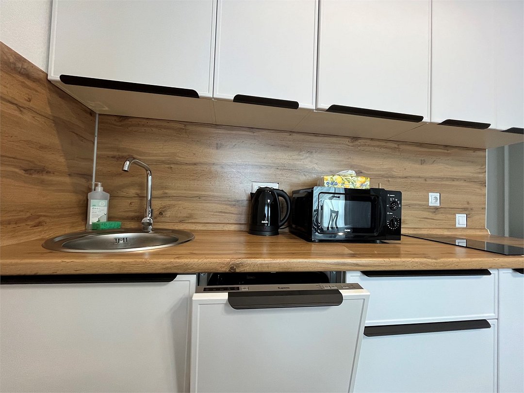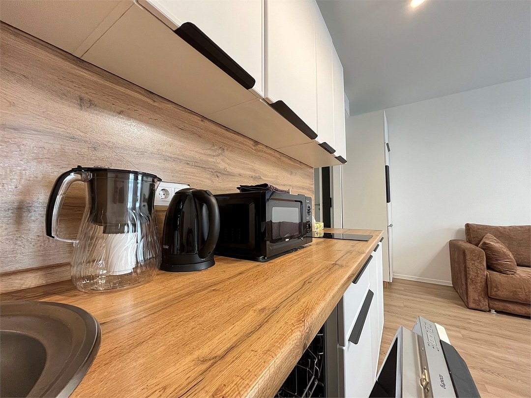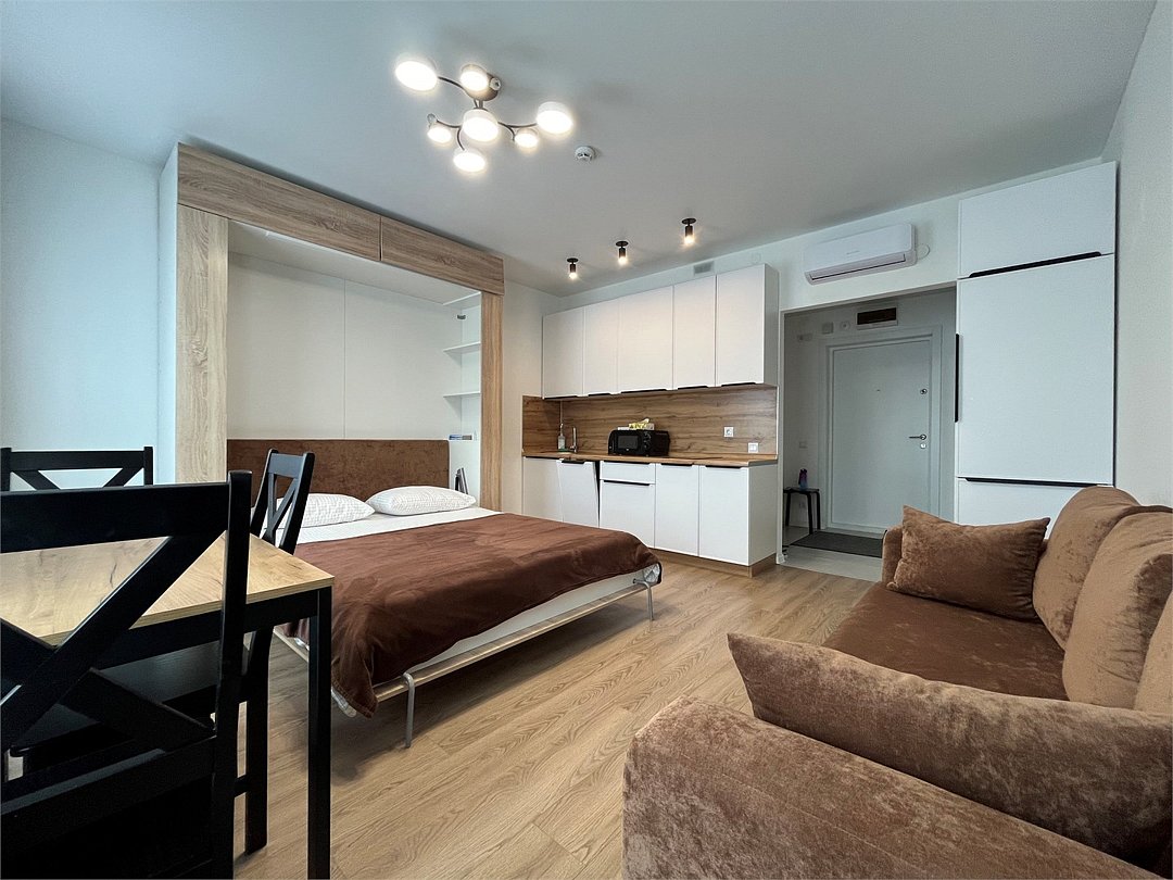 Wi-Fi, холодильник, кондиционер, фен, система безопасности, плита для приготовления пищи, микроволновая печь, утюг, ванная комната, душевая кабина, санузел, водонагреватель, двуспальная кровать, гладильная доска, диван, стулья, шкаф для одежды, обеденный стол, посудомоечная машина, стиральная машина, чайник, унитаз, раковина, отопление, душ, вид на город, вид во двор, ламинат, кухонная посуда, стаканы, кухонная утварь, столовые приборы, стул, стол, туалетные средства, сплит-система, сушилка для белья, кухонный уголок, шкаф-купе, морозильная камера, вешалки-плечики, мыло, воздухоочиститель, самостоятельная регистрация, онлайн-регистрация, без питомцевВ студии