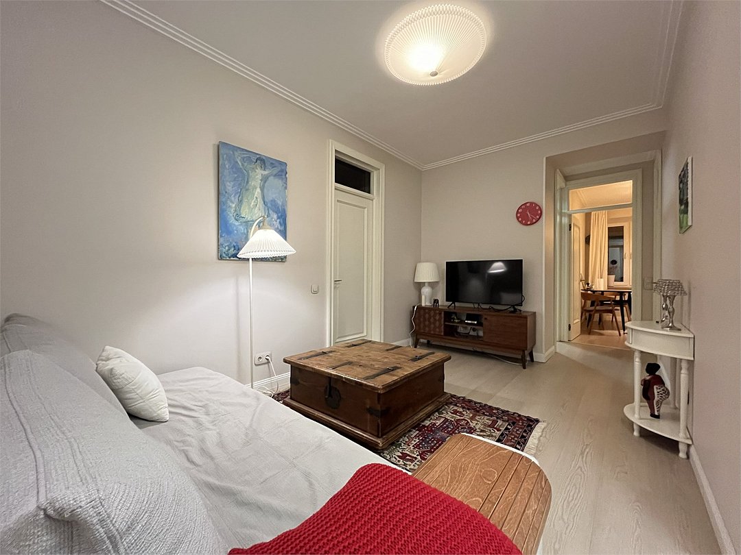 Wi-Fi, холодильник, кондиционер, фен, плита для приготовления пищи, микроволновая печь, утюг, обогреватель, ванная комната, душевая кабина, водонагреватель, банные полотенца, кровать «Queen size», гладильная доска, диван, стулья, шкаф для одежды, вешалки, письменный стол, обеденный стол, кухня, камин, набор посуды, стиральная машина, чайник, унитаз, раковина, отопление, вид во двор, паркет, высокие потолки, кухонная посуда, стаканы, кухонная утварь, столовые приборы, стул, стол, туалетные средства, сушилка для белья, цифровое тв, диван-кровать, раскладной диван, гостиничная парфюмерия, телевизор со Smart TV, без питомцевВ квартире