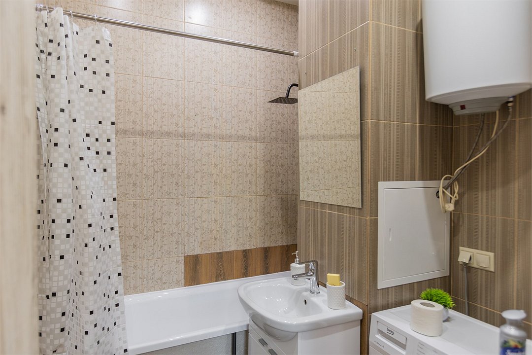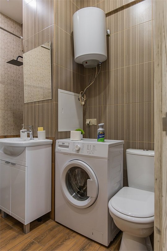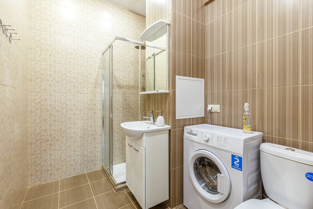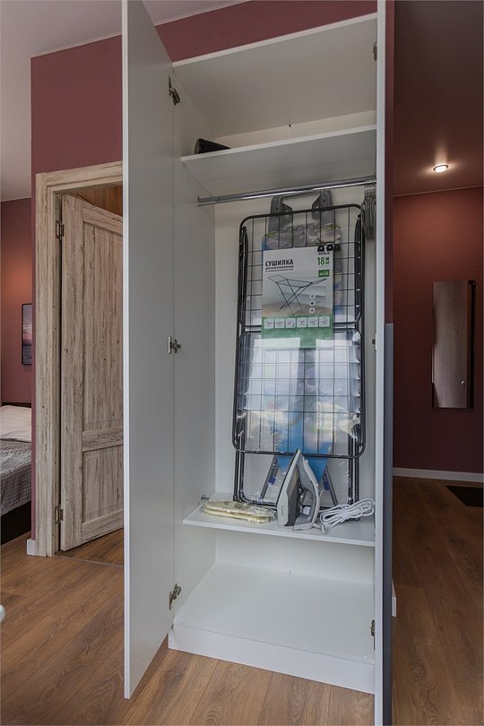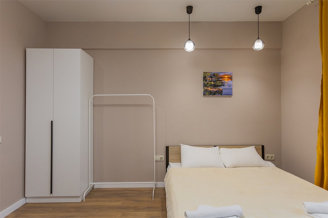Wi-Fi, холодильник, фен, плита для приготовления пищи, микроволновая печь, утюг, ванная комната, душевая кабина, банные полотенца, тапочки, косметические средства, балкон, кровать «King size», гладильная доска, ортопедический матрас, стулья, шкаф для одежды, вешалки, обеденный стол, зеркало, звуконепроницаемые стены и окна, чайный набор, набор посуды, стиральная машина, чайник, раковина, обеденная зона, вид на город, плиточное покрытие, ламинат, высокие потолки, кухонная посуда, стаканы, столовые приборы, туалетные средства, туалет, сушилка для белья, телевизор с плоским экраном, мини-кухня, кухонный уголокВ апартаментах