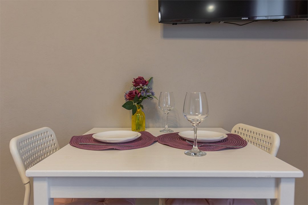 телевизор, Wi-Fi, холодильник, фен, плита для приготовления пищи, микроволновая печь, утюг, ванная комната, душевая кабина, банные полотенца, тапочки, гигиенические средства, косметические средства, кровать «King size», гладильная доска, ортопедический матрас, стулья, шкаф для одежды, вешалки, обеденный стол, звуконепроницаемые стены и окна, чайный набор, набор посуды, обслуживание номеров, чайник, унитаз, раковина, душ, плиточное покрытие, вид во двор, ламинат, высокие потолки, кухонная посуда, стаканы, кухонная утварь, столовые приборы, туалетные средства, туалет, сушилка для белья, мини-холодильник, мини-кухня, кухонный уголок, телевизор со Smart TVВ апартаментах