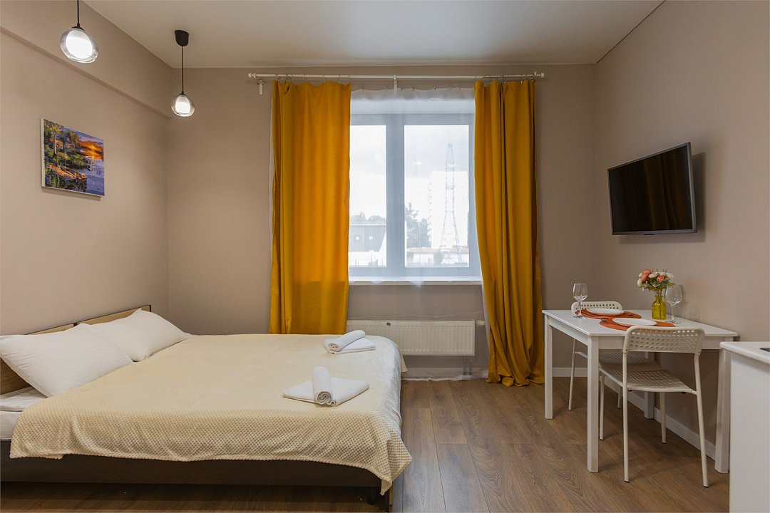 Wi-Fi, холодильник, фен, плита для приготовления пищи, микроволновая печь, утюг, ванная комната, душевая кабина, банные полотенца, тапочки, косметические средства, кровать «King size», гладильная доска, стулья, шкаф для одежды, вешалки, обеденный стол, зеркало, звуконепроницаемые стены и окна, чайный набор, набор посуды, стиральная машина, чайник, раковина, обеденная зона, вид на город, плиточное покрытие, ламинат, высокие потолки, кухонная посуда, стаканы, столовые приборы, туалетные средства, туалет, сушилка для белья, телевизор с плоским экраном, мини-кухня, кухонный уголокВ апартаментах