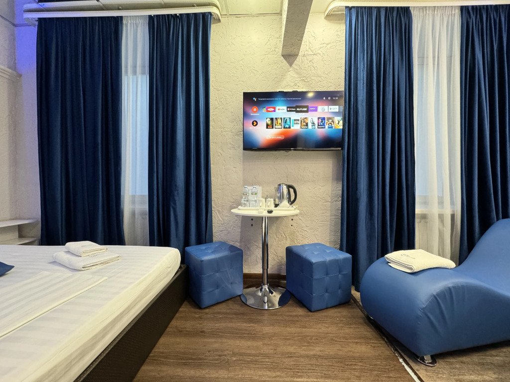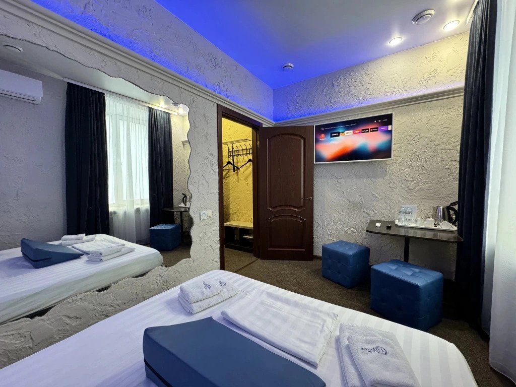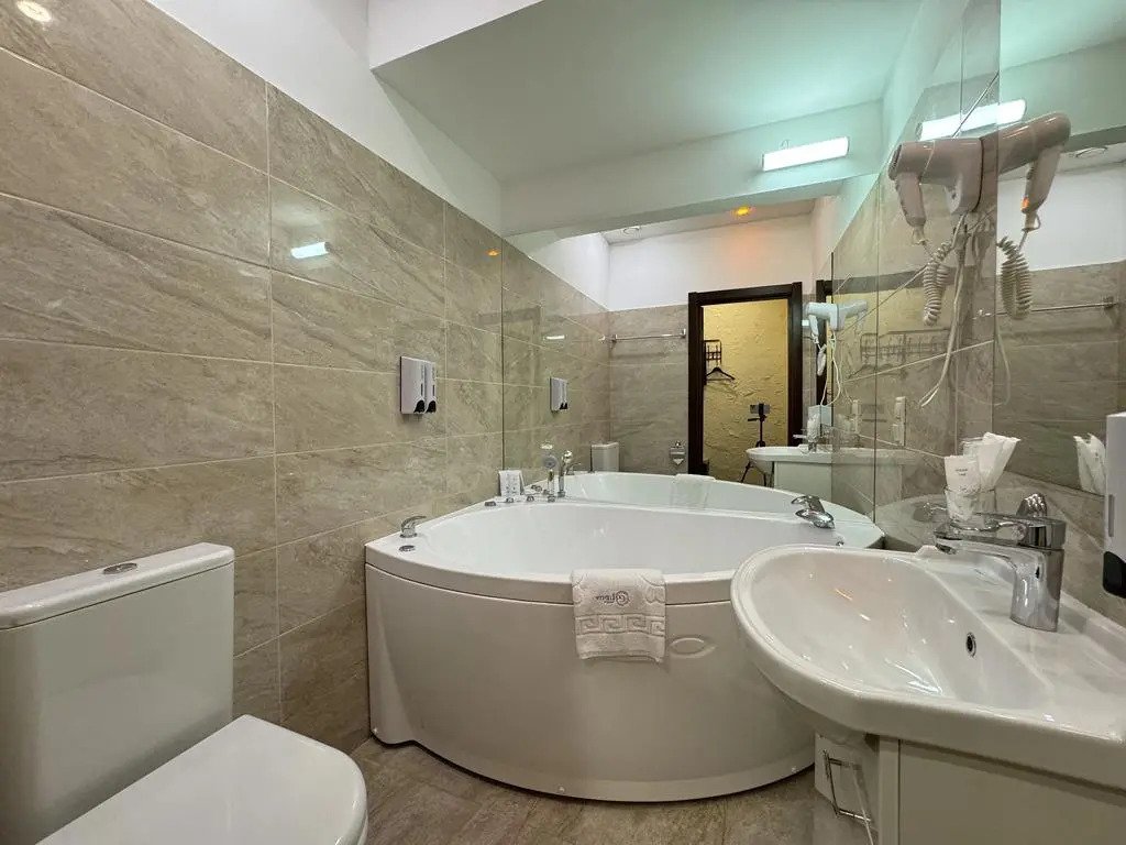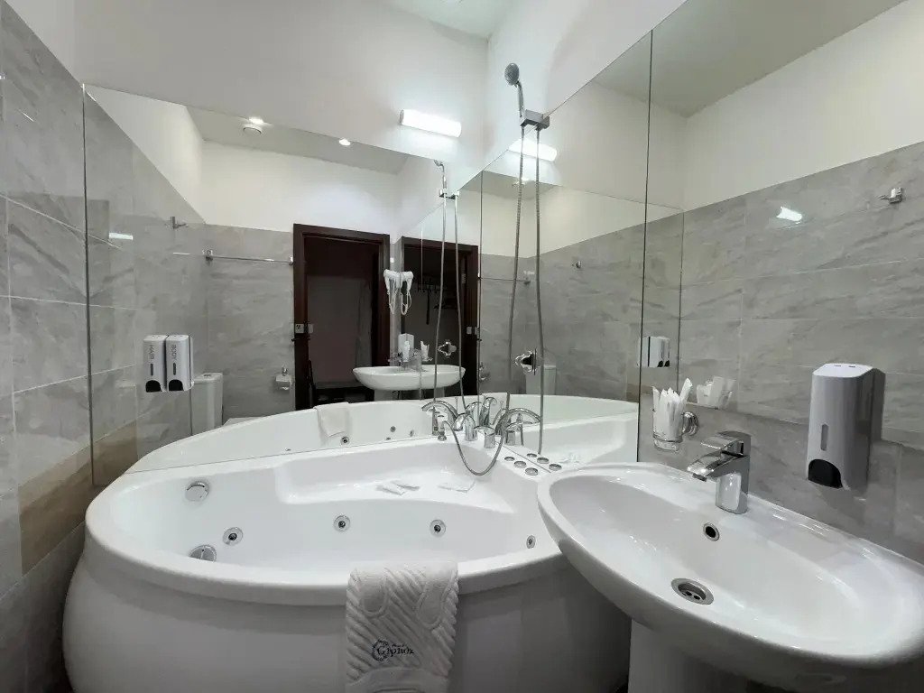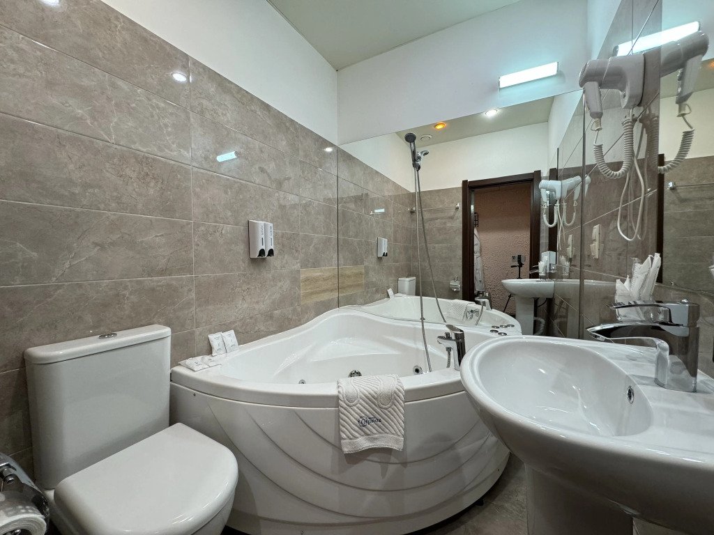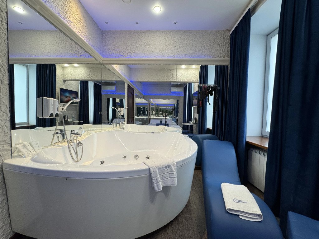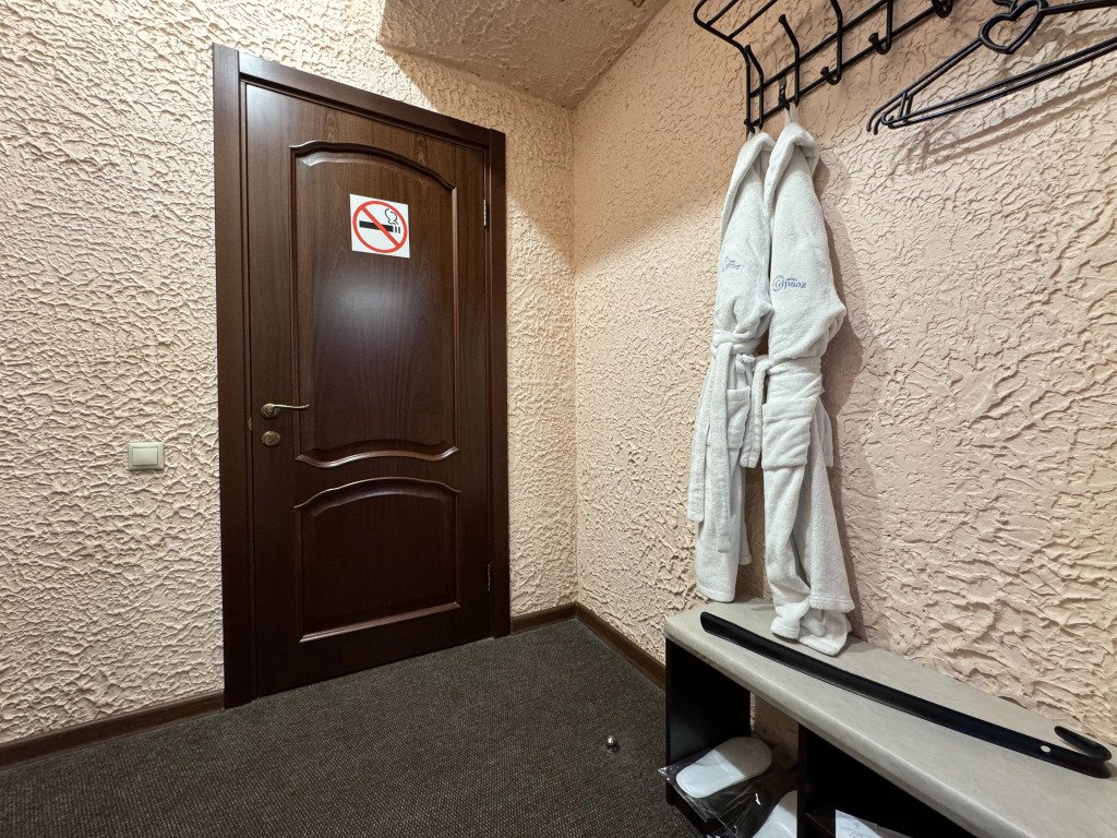 В номере вы найдёте телевизор, мини-бар и халат. Оснащение зависит от выбранной категории номера.