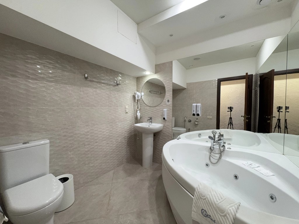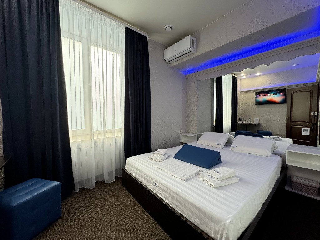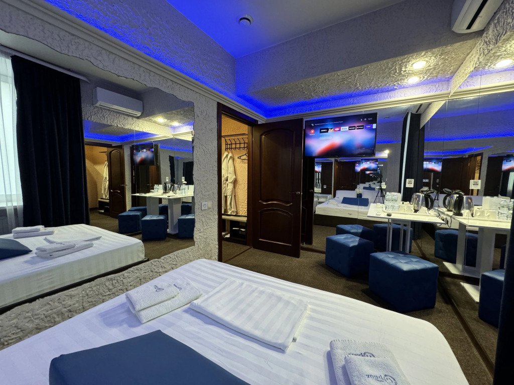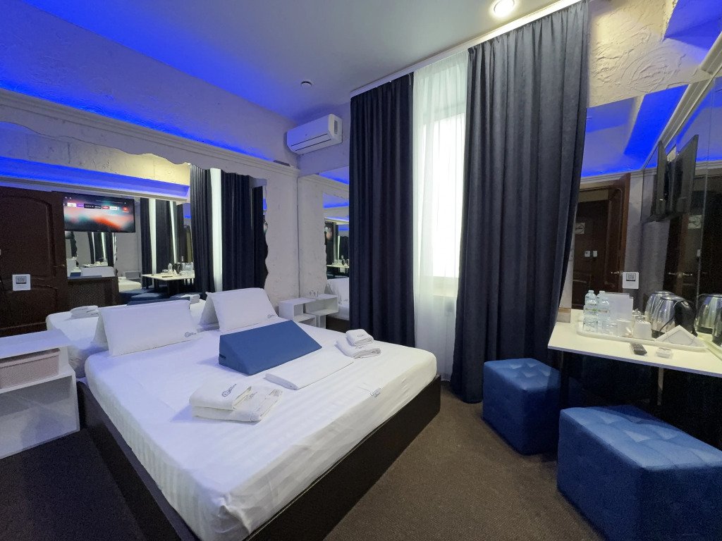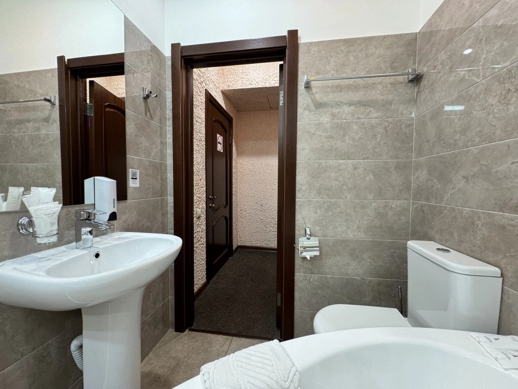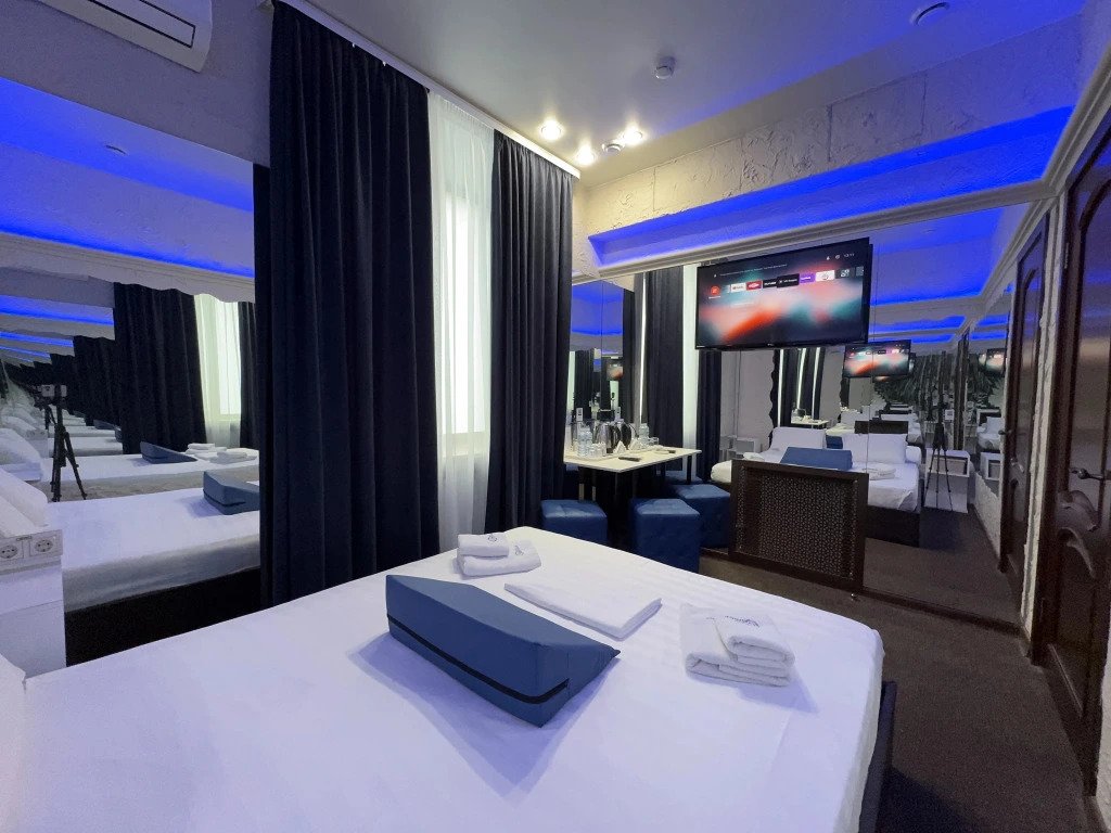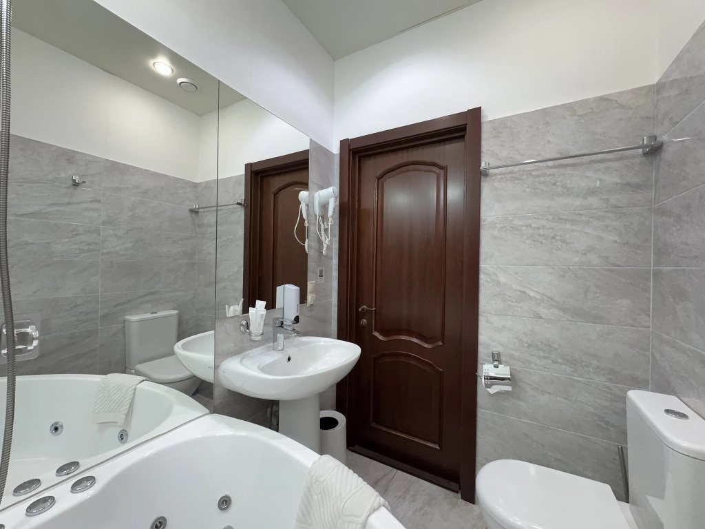 В номере вы найдёте телевизор, мини-бар и халат. Оснащение зависит от выбранной категории номера.