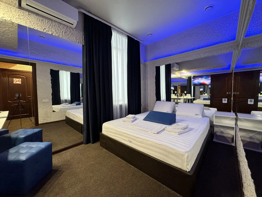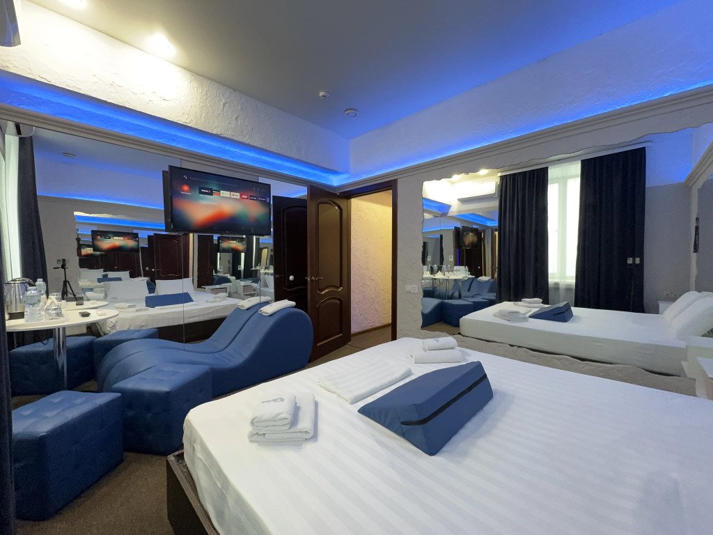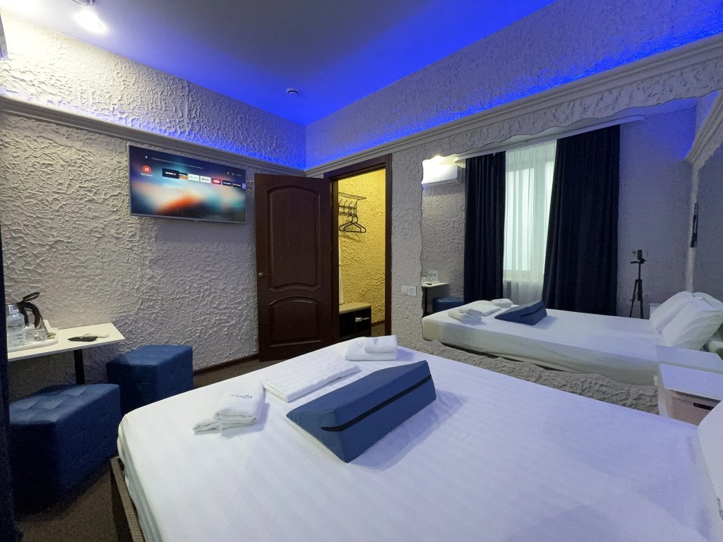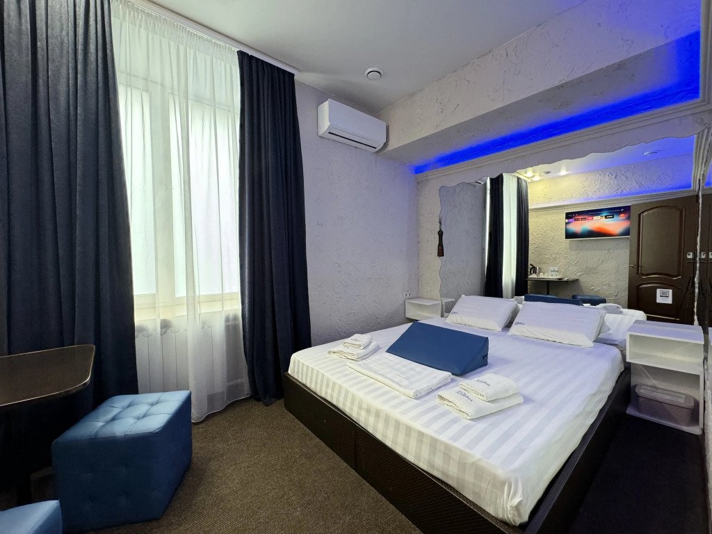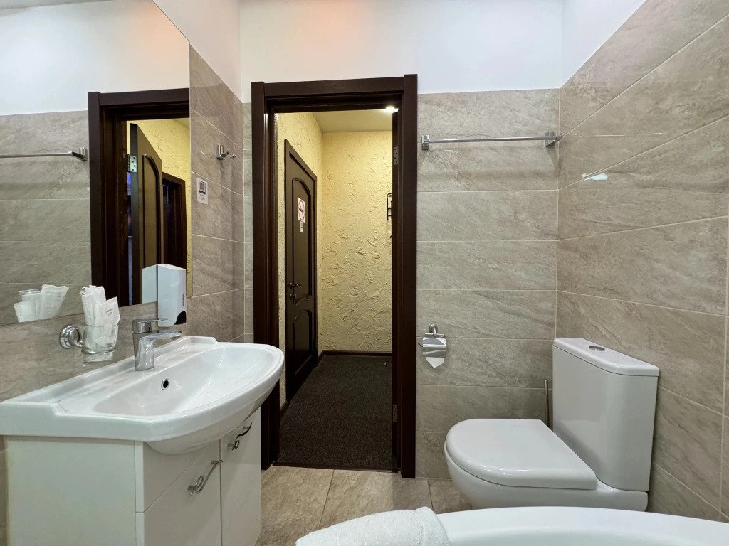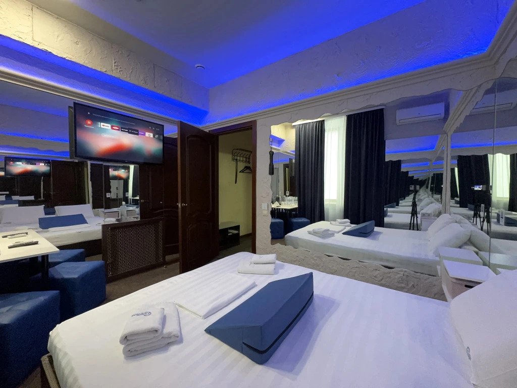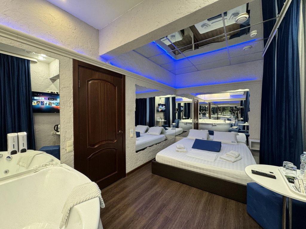 В номере вы найдёте телевизор, мини-бар и халат. Оснащение зависит от выбранной категории номера.