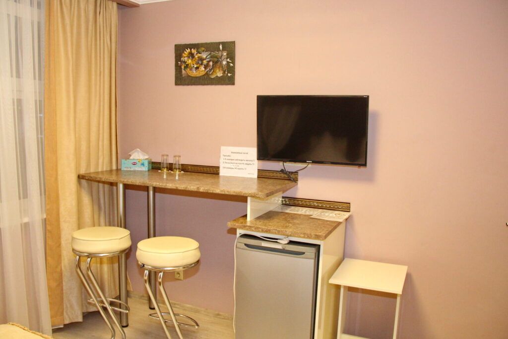 В номере вас будут ждать душ, телевизор и халат. Перечисленные услуги есть не во всех номерах.