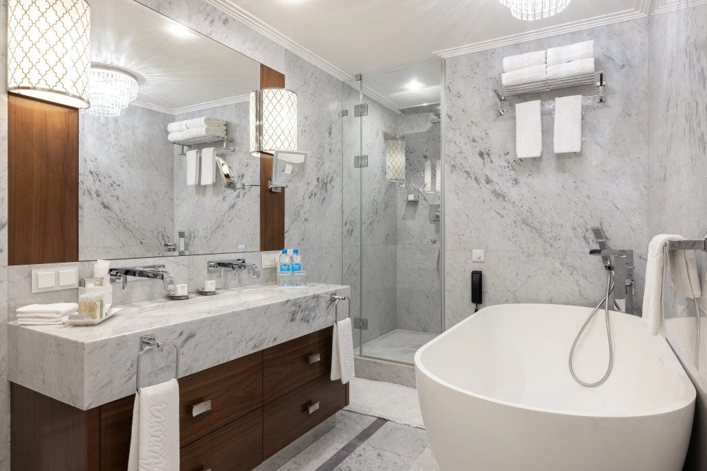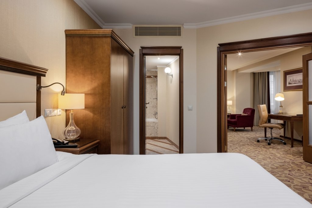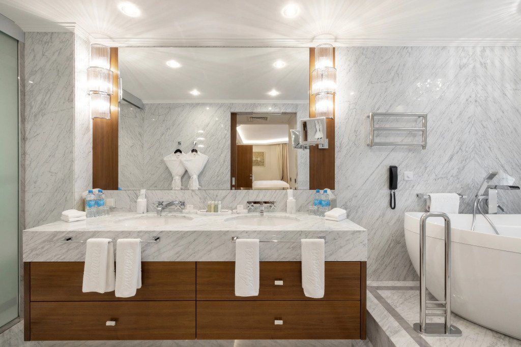 - Российским гражданам при заезде обязательно нужно иметь при себе оригинал одного из следующих документов: действующий паспорт РФ или заграничный паспорт. Стойка регистрации работает 24/7. Завтрак для детей до 5 лет предоставляется бесплатно. Для детей с 6 до 11 лет предоставляется скидка на завтрак в размере 50%. Для детей старше 12 лет завтрак оплачивается в полном объеме. Дети до 3 лет размещаются бесплатно, дети старше 3 лет приравниваются к взрослым. Часовая парковка — 900.00 RUB. Суточная парковка — 10000.00 RUB. Размещение с животными возможно при предварительном подтверждении от отеля. Проживание возможно с собаками или кошками до 10 кг. Стоимость проживания с питомцем до 5 кг составляет 5000.00 RUB за ночь, до 10 кг — 8000.00 RUB за ночь, дополнительно к основному тарифу за номер. При заселении взимается возвратный депозит в размере 10000.00 RUB. Депозит возвращается гостю в полном размере в случае отсутствия необходимости проводить генеральную уборку номера, а также в случае отсутствия факта порчи имущества гостиницы. В отеле имеется возможность раннего заезда или позднего выезда. Для оформления данной услуги можно обратиться при заселении или позвонив заранее. Номер указан в подтверждении бронирования. Часы работы фитнес-центра в новогодние праздники: 31 декабря 2025 года — с 07:00 до 20:00; с 1 по 11 января 2026 года — с 09:00 до 23:00. Предварительная запись на посещение фитнес-центра обязательна. Контактные данные указаны в подтверждении бронирования.