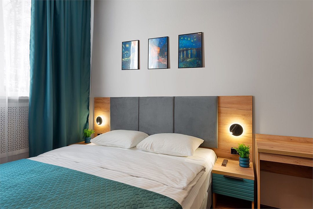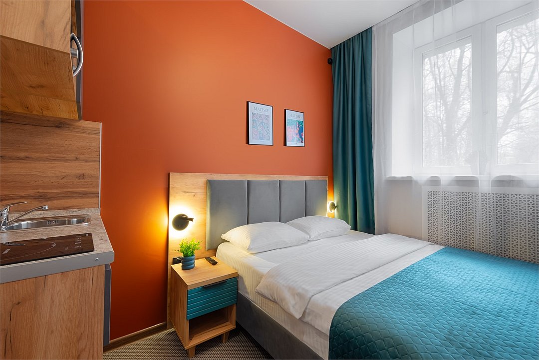 Уютные апартаменты со всей необходимой техникой и собственной ванной комнатой. Кровать двуспальная или 2 односпальные.Услуги и удобства