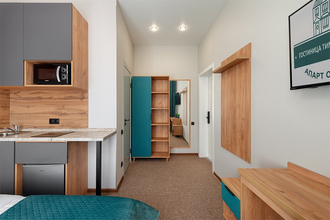 Номер студия со своей ванной комнатой и кухней. В номере имеется Смарт-тв, холодильник, микроволновка, плита.Услуги и удобства