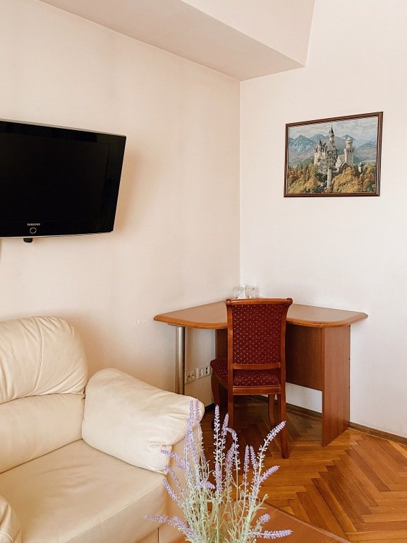 Двухместная студия с балконом и с красивым видом из окна двуспальная кровать