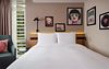 Wi-Fi, телефон, холодильник, кондиционер, фен, будильник, утюг, душевая кабина, банные полотенца, тапочки, косметические средства, кровать «King size», гладильная доска, стулья, вешалки, журнальный столик, письменный стол, багажная тумба, зеркало, обслуживание номеров, сейф, минеральная вода, вид на город, стаканы, туалет, телевизор с плоским экраном, номер для некурящих, USB-порт, чайная станцияВ гостиничном номере