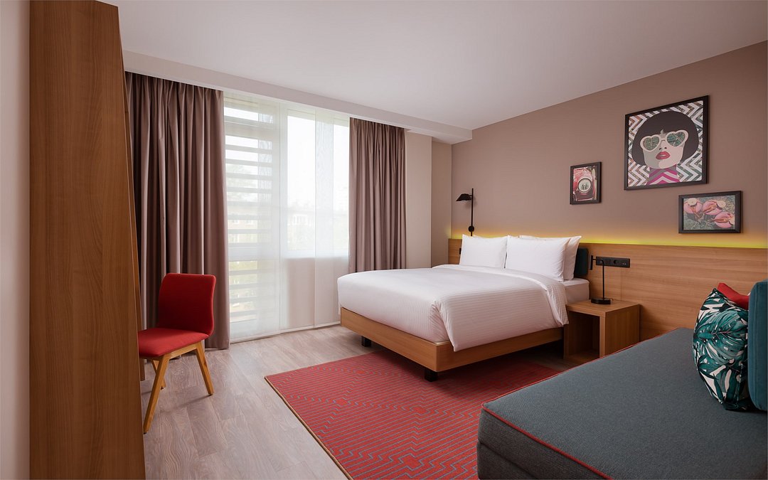 Отель предлагает своим гостям 147 номеров 4 категорий и широкий набор услуг для современных путешественников: оставайтесь всегда на связи со своими друзьями и близкими, используя бесплатный Wi-Fi на всей территории отеля, включая уютное и функциональное лобби с современными коворкинг-зонами. Не изменяйте своим привычкам даже в поездках с круглосуточным тренажерным залом, и решайте свои рабочие задачи с комфортом в переговорной с естественным освещением, качественным оборудованием и даже и креслами-мешками, если есть задачи, требующие креативного подхода.