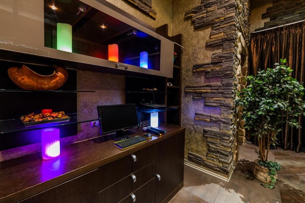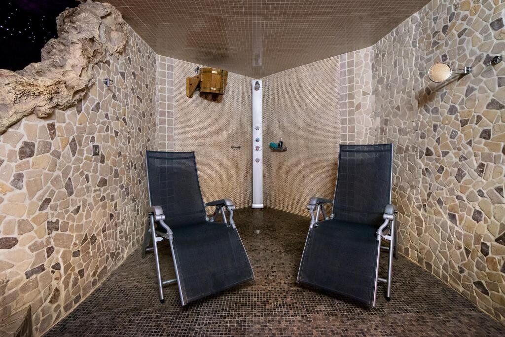 Для любителей активного отдыха есть площадка для барбекю, бассейн и крытый бассейн. В коттедже работает лифт.