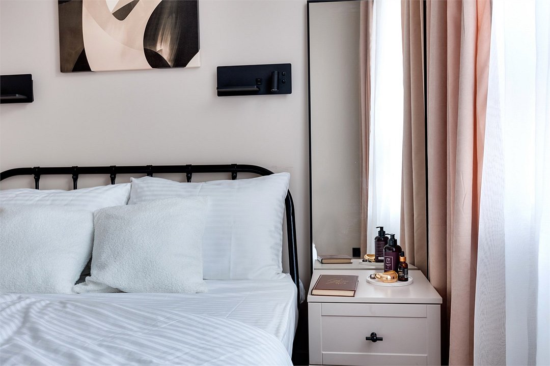 Wi-Fi, холодильник, светильник, фен, плита для приготовления пищи, микроволновая печь, утюг, ванная комната, ванна, ванна или душевая кабина, водонагреватель, банные полотенца, тапочки, косметические средства, балкон, двуспальная кровать, гладильная доска, диван, стулья, шкаф для одежды, обеденный стол, зеркало, кухня, чайный набор, набор посуды, посудомоечная машина, стиральная машина, чайник, унитаз, раковина, отопление, вид на город, тостер, стаканы, кухонная утварь, столовые приборы, стул, стол, туалетные средства, сушилка для белья, диван-кровать, раскладной диван, шкаф-купе, телевизор со Smart TV, номер для некурящих, электронный консьерж 24/7, онлайн-регистрация до заезда, морозильная камера, духовка, межкомнатная дверь, набор для приготовления чая и кофе, вешалки-плечики, мыло, затемняющая штора, зеркало в полный рост, самостоятельная регистрация, онлайн-регистрация, можно с питомцами, часы-будильникВ гостиничном номере