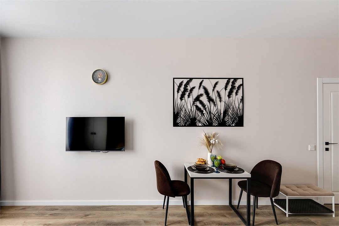 Стильная однокомнатная квартира «Жизель» от HOME24 в ЖК "Испанские кварталы"! Погрузитесь в атмосферу современного комфорта в элегантной квартире бизнес-класса на 7-м этаже с панорамными окнами в пол! Это идеальный вариант для тех, кто ценит удобство и стиль. Вместимость: до 4 человек. ✨ Что ждет вас внутри: Комфорт и технологии: кондиционер, посудомоечная и стиральная машины,духовка, тостер, бесплатный Wi-Fi и телевизор со Smart TV. Фильтр для воды обратного осмоса - вода из крана как из горного источника! Гарантия отличного сна: уютная спальня с двуспальной кроватью 160x200 см с ортопедическим матрацем и шторами blackout для полного затемнения. В гостиной — удобный раскладной диван. Продуманное освещение: потолочная лампа с пультом для создания идеальной атмосферы. Полное оснащение: современная кухня со всей техникой и посудой, а также приветственный набор (чай, кофе, сахар, специи). Забота о гостях: комплекты полотенец, средства гигиены (шампунь, гель, мыло) и тапочки. В спальне мы оставили для вас книги - для уютных вечеров. Идеальное расположение и инфраструктура: Всего 23 минуты пешком или 17 минут на автобусе до метро Прокшино. Всего 35 минут на метро до центра Москвы. 15 минут на машине до аэропорта Внуково. Удобный выезд на Филатовское шоссе. Рядом с вами — всё для жизни, работы и отдыха: Ведущие вузы: РУДН, Медицинский университет им. Пирогова, РАНХиГС, МИРЭА. Медицинские центры: Научный центр акушерства им. Кулакова, РДКБ, Центр детской гематологии им. Дмитрия Рогачева. Парки и отдых: Хованская дубрава с прудом для прогулок на свежем воздухе. Шопинг и развлечения: ТРЦ «Саларис», рынок «Фуд Сити», рестораны и СПА-салоны. Спорт: фитнес-клубы и банный комплекс «Фатеевы бани». На территории ЖК «Испанские Кварталы»: Озелененный двор без машин, детские и спортивные площадки. Кафе, кофейни, пекарни и разнообразные магазины. Условия заселения — просто и четко: Круглосуточное самостоятельное заселение: заезд с 14:00, выезд до 12:00. Бронируйте — и через 2 минуты вы получите инструкцию! Предоставляем отчетные документы и кассовый чек. Страховой депозит: 2000 рублей (возвращается при выезде). Дети до 5 лет — бесплатно (без отдельного места). Питомцы welcome! Всего 500 руб./сутки. Постельное белье: Включено в стоимость для основного спального места. Дополнительный комплект — 500 руб. Наши правила (для комфортного отдыха всех): Курение запрещено. Без вечеринок. Не более 4 человек. ✨ Бронируйте и добавляйте в избранное! Мы на связи с 9:00 до 00:00, ответим на все вопросы. ЖДЕМ ВАС В ГОСТИ!Услуги и удобства
