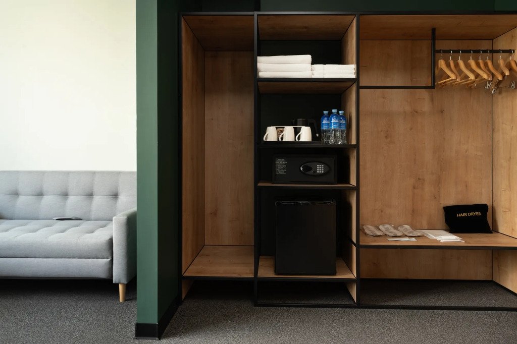 В номере вы найдёте телевизор. Оснащение зависит от выбранной категории номера.
