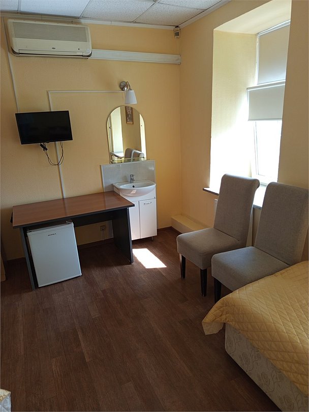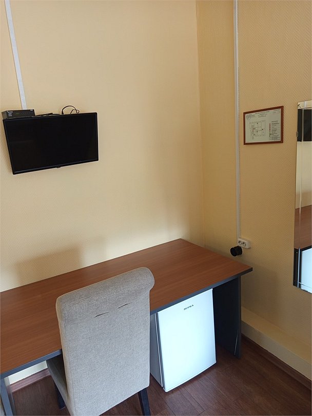 Wi-Fi, светильник, фен, вентилятор, будильник, утюг, банные полотенца, односпальная кровать, гладильная доска, шкаф для одежды, зеркало, чайник, отопление, вид на город, кулер на этаже, вид во двор, высокие потолки, стаканы, кофейный столик, стул, тумба, туалетные средства, санузел на этаже, цифровое тв, внутренний телефон, телевизор с плоским экраном, мини-холодильник, душ на этаже, уборка номераВ гостиничном номере
