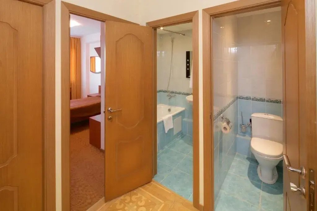 В номере вы найдёте телевизор и халат. Оснащение зависит от выбранной категории номера.