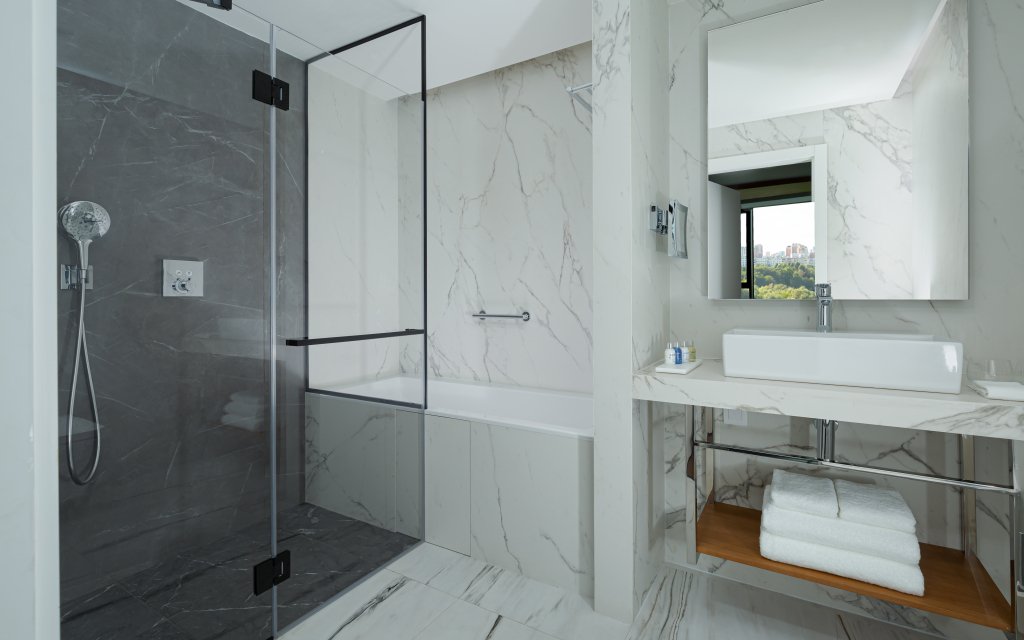 В номере вы найдёте телевизор и халат. Оснащение зависит от выбранной категории номера.