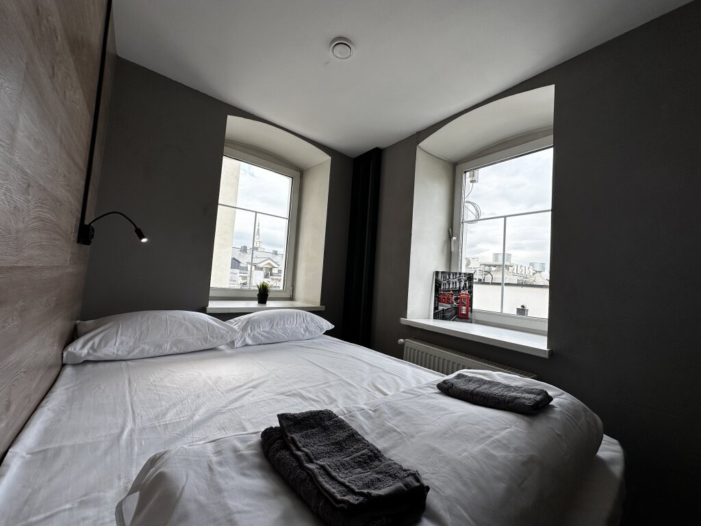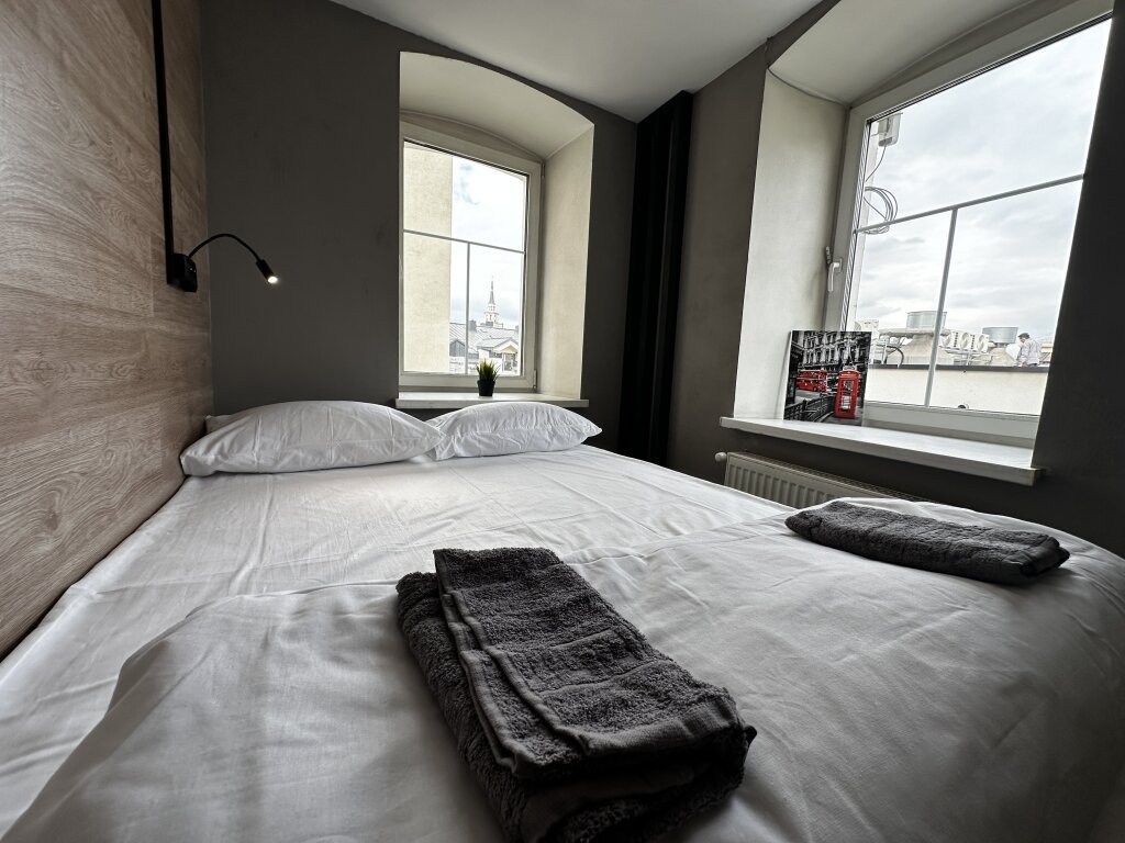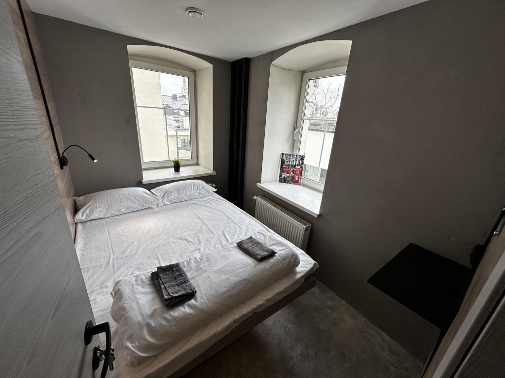 Двухместный номер Улучшенный (без окна, нижняя кровать, высокий потолок) двуспальная кровать